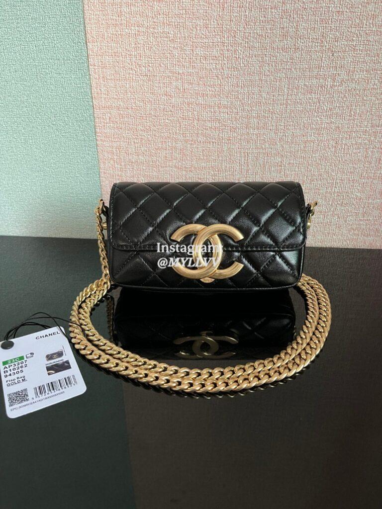 Top Quality Version:MYLLVV » Chanel Diamond Plaid Lambskin Phone Bag Black With Gold AS3207