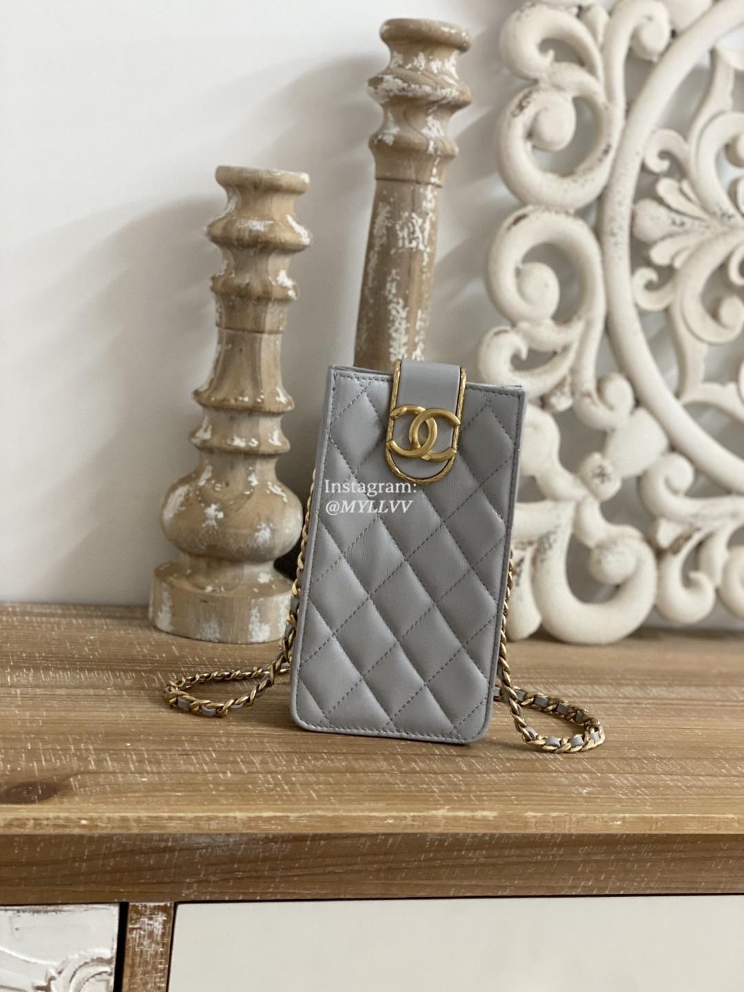 Dimension: 18.0 × 10.0 × 3.0 cm Top Quality Version:MYLLVV » Chanel Diamond Plaid Lambskin Phone Bag Grey With Gold 2981
