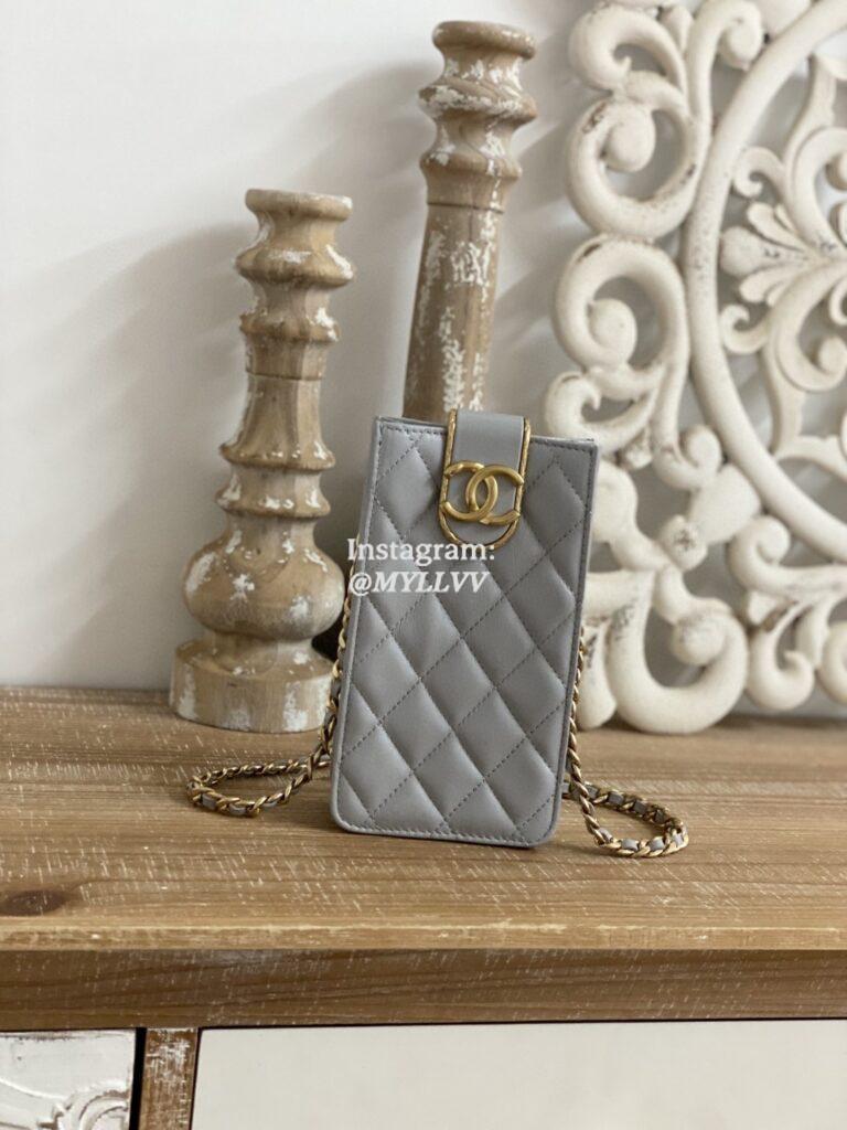 Top Quality Version:MYLLVV » Chanel Diamond Plaid Lambskin Phone Bag Light Grey With Gold 2981