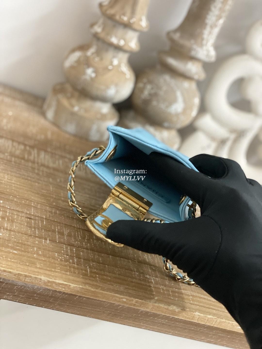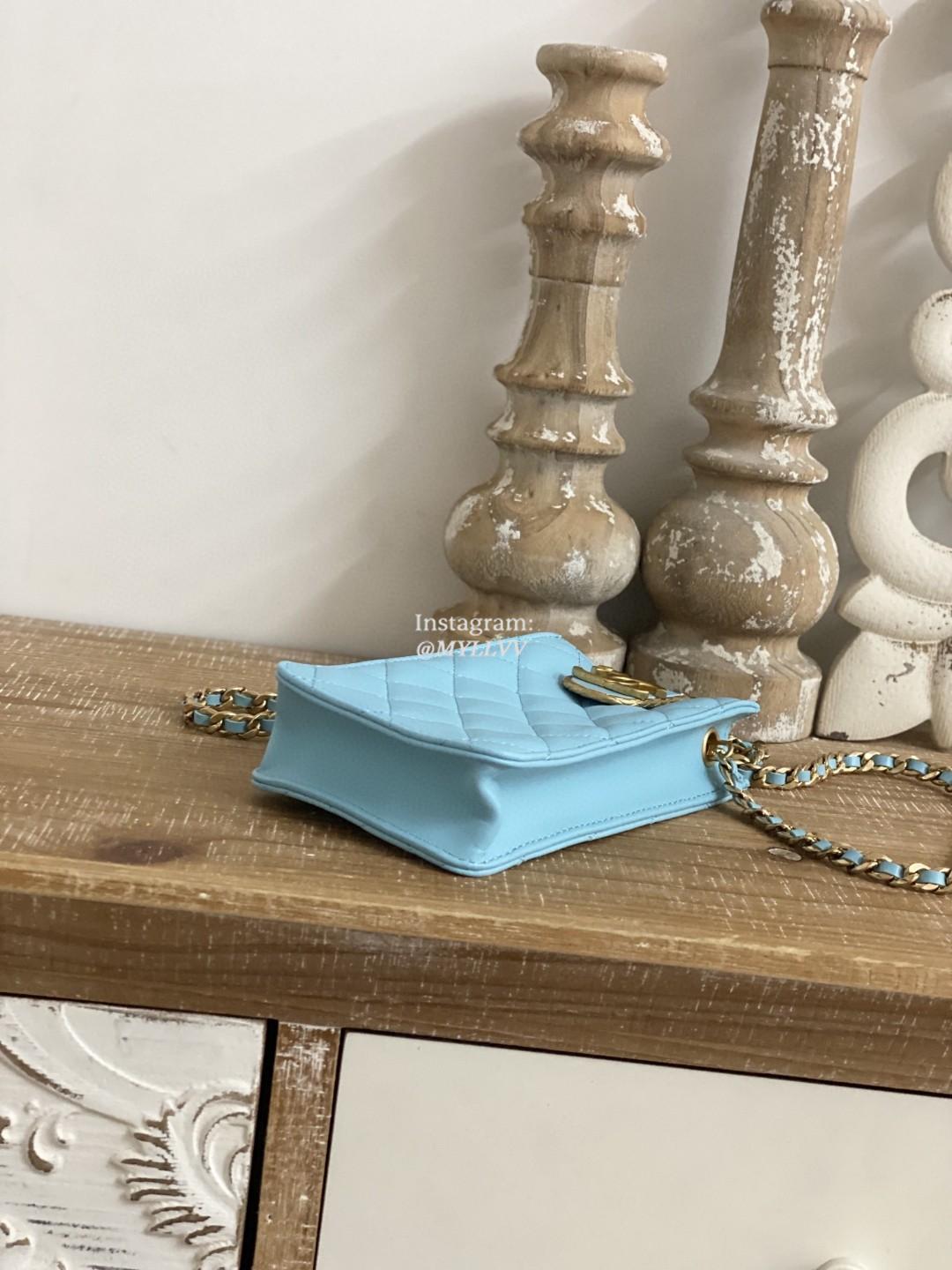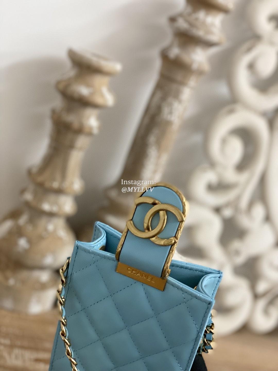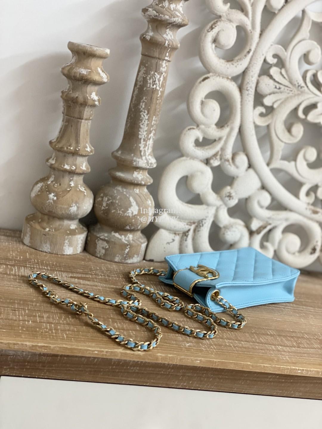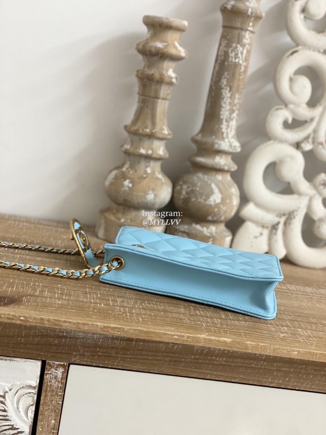 Top Quality Version:MYLLVV » Chanel Diamond Plaid Lambskin Phone Bag Sky Blue With Gold 2981