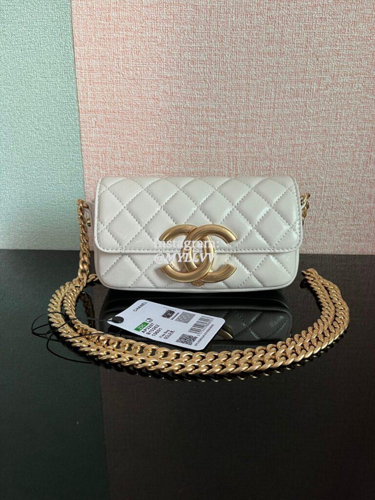 Top Quality Version:MYLLVV » Chanel Diamond Plaid Lambskin Phone Bag White With Gold AS3207