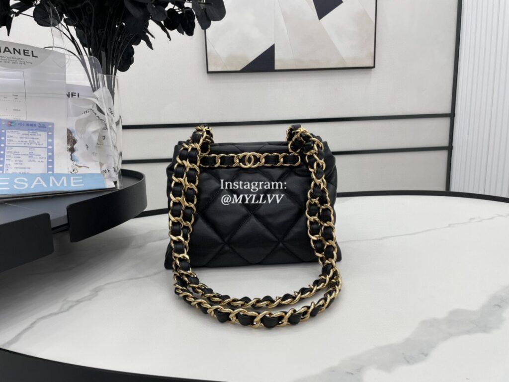 Top Quality Version:MYLLVV » Chanel Diamond Plaid Lambskin Shopping Bag Black With Gold AS3502
