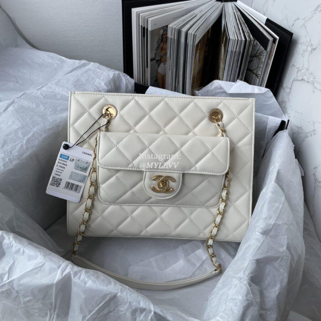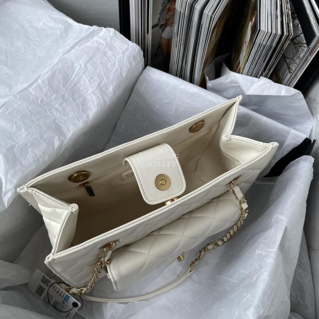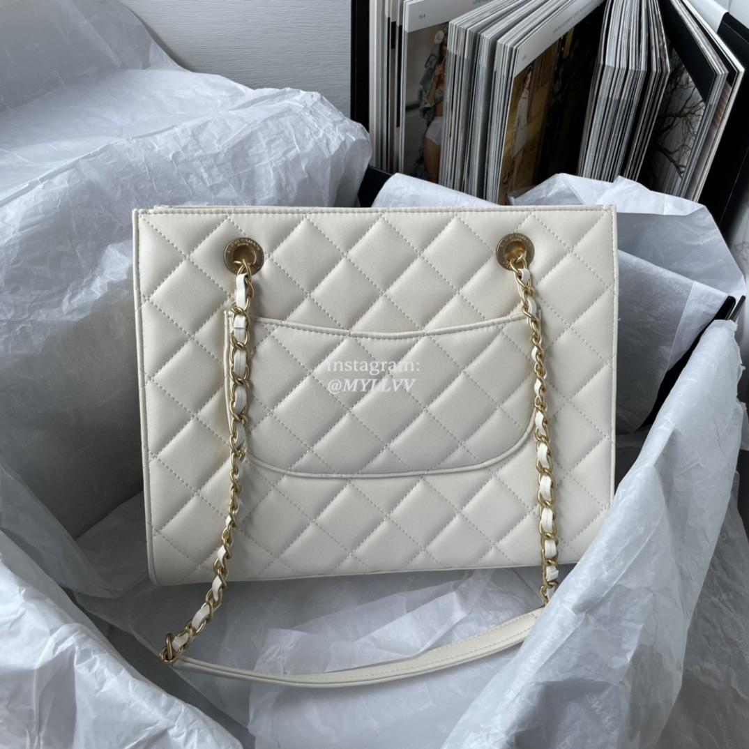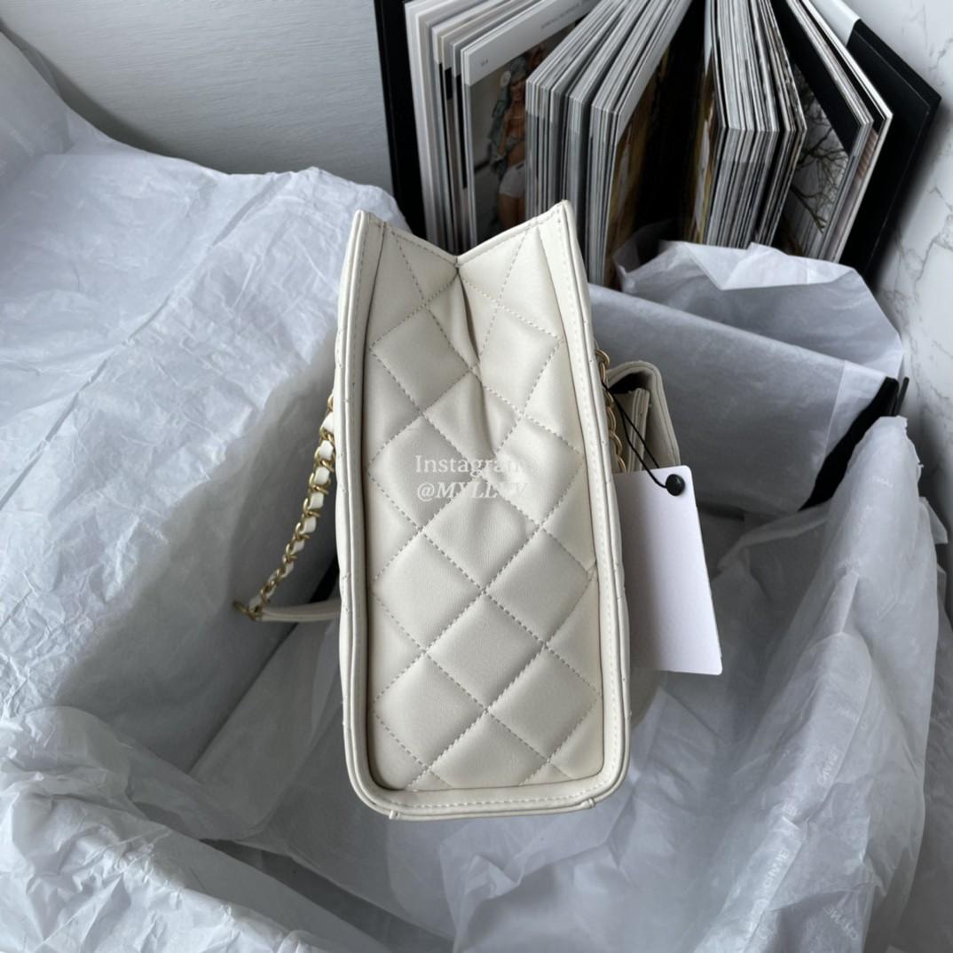 Top Quality Version:MYLLVV » Chanel Diamond Plaid Lambskin Shopping Bag White With Gold AS2942