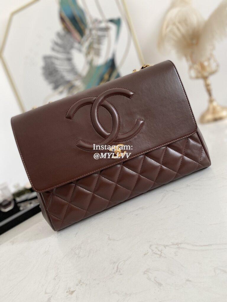 Top Quality Version:MYLLVV » Chanel Diamond Plaid Lambskin Shoulder Bag Coffee With Gold 92233