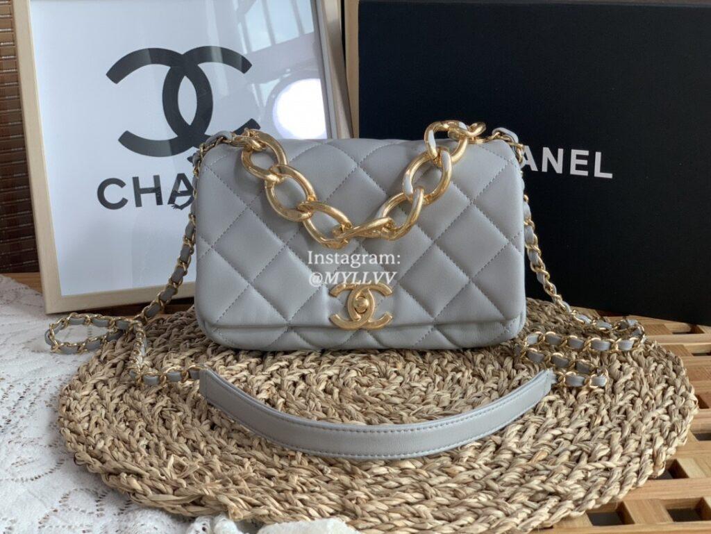 Top Quality Version:MYLLVV » Chanel Diamond Plaid Lambskin Shoulder Bag Grey With Gold 3366