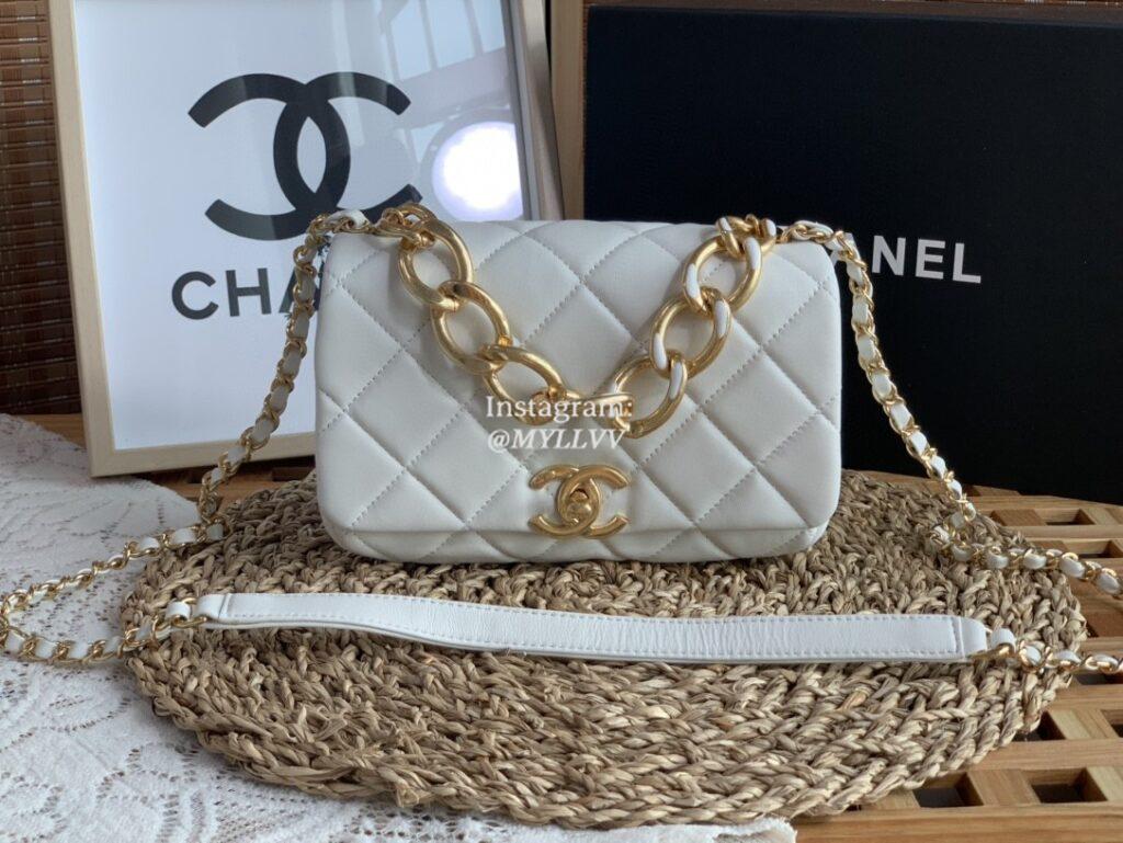 Top Quality Version:MYLLVV » Chanel Diamond Plaid Lambskin Shoulder Bag White With Gold 3366