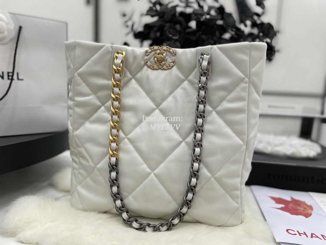 Dimension: 30.0 × 37.0 × 10.0 cm Top Quality Version:MYLLVV » Chanel Diamond Plaid Lambskin Tote Bag White AS3519