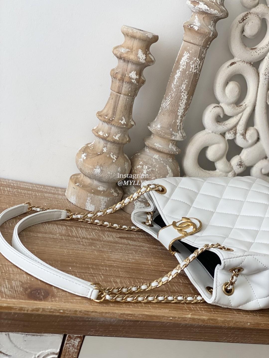 Top Quality Version:MYLLVV » Chanel Diamond Plaid Lambskin Tote Bag White With Gold AS3477