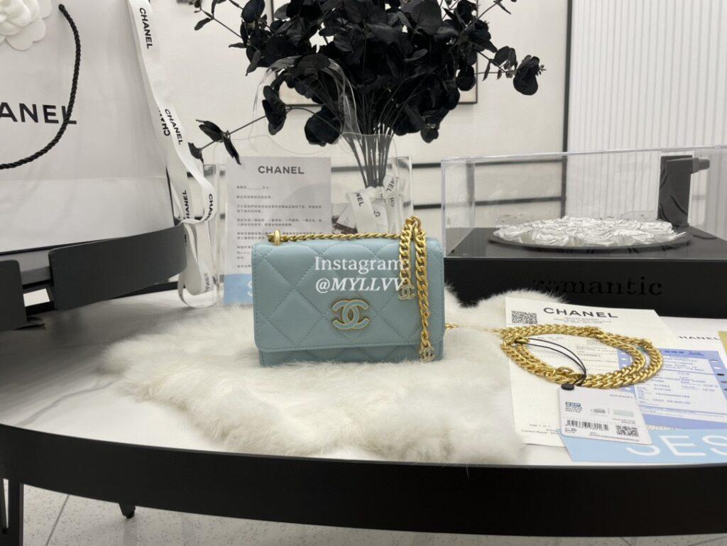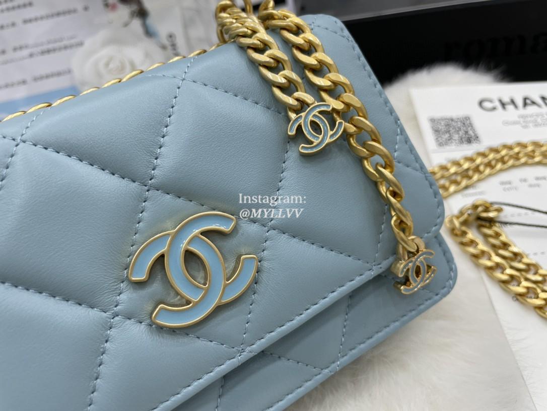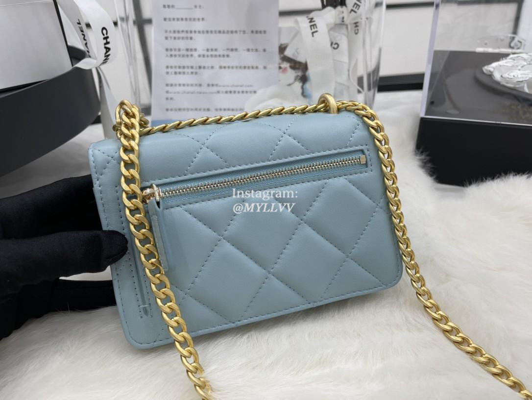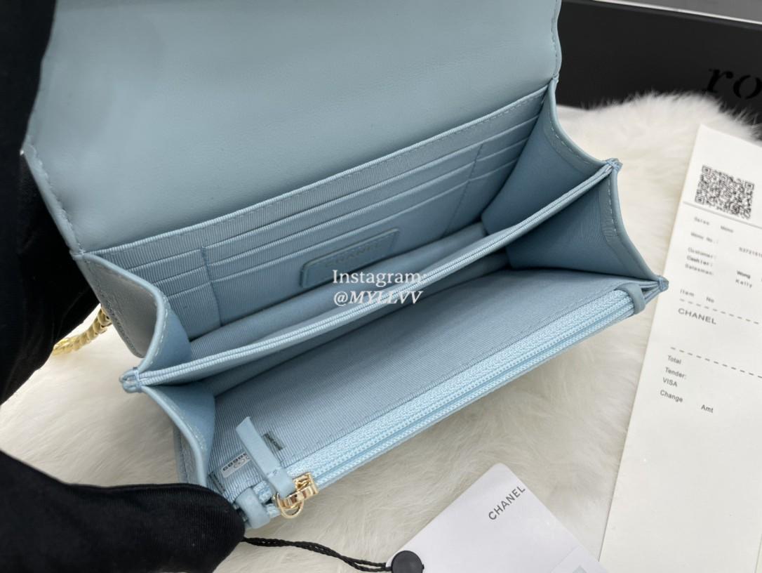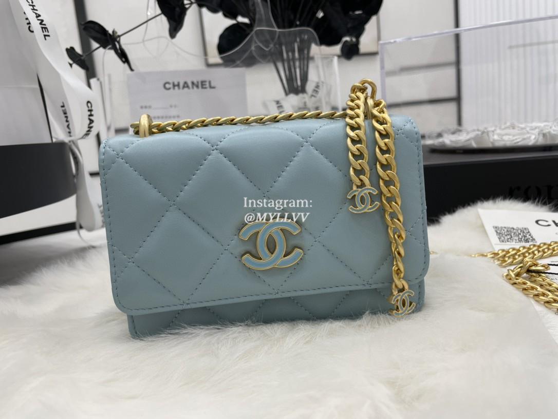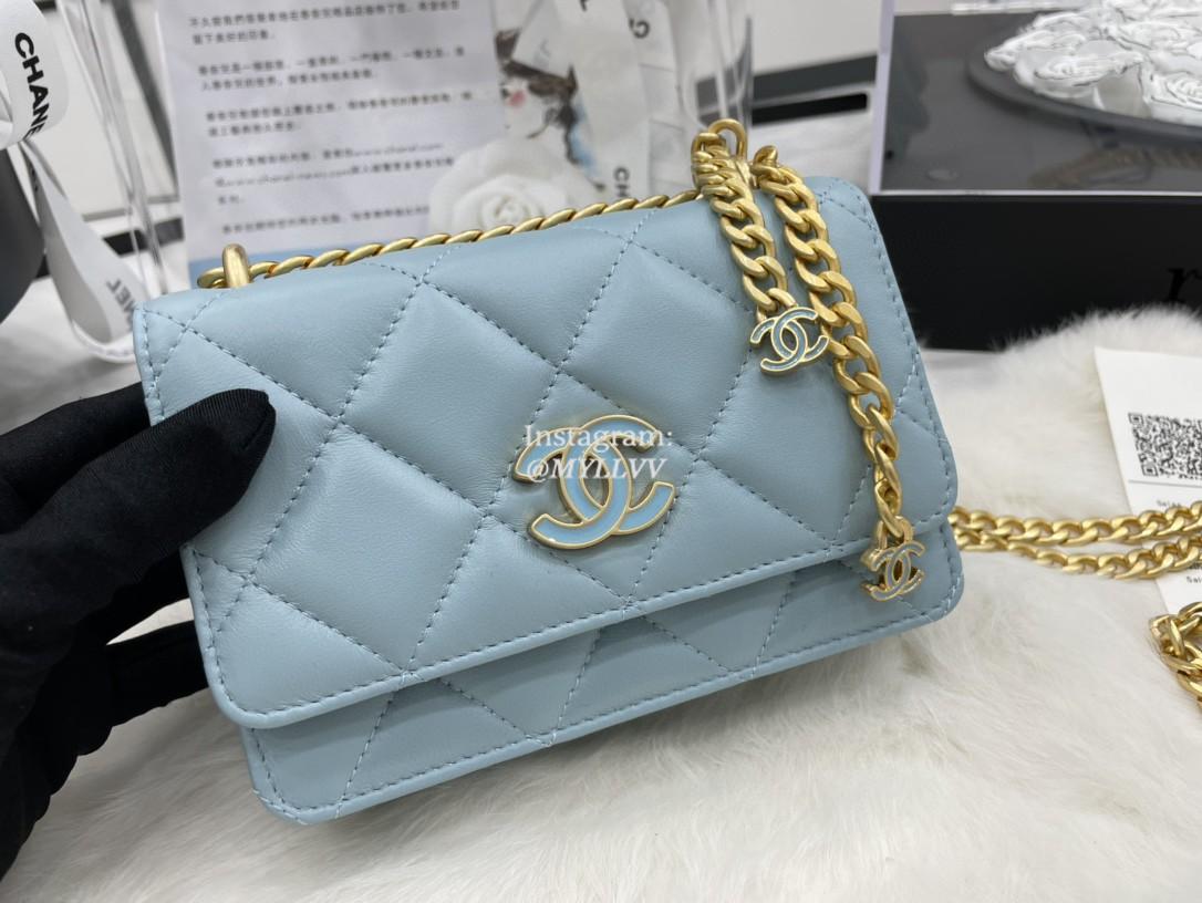 Top Quality Version:MYLLVV » Chanel Diamond Plaid Lambskin Woc Chain Bag Sky Blue With Gold AP1524
