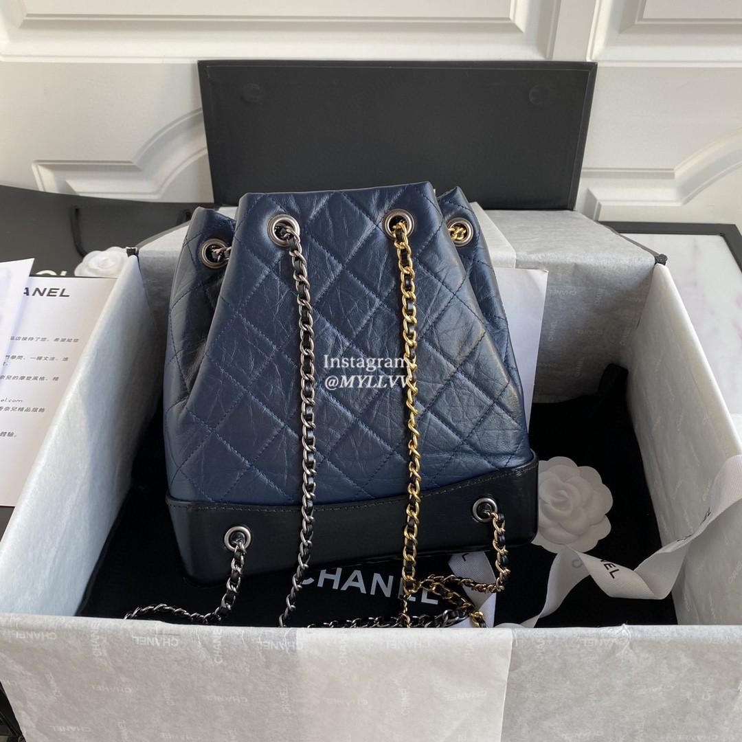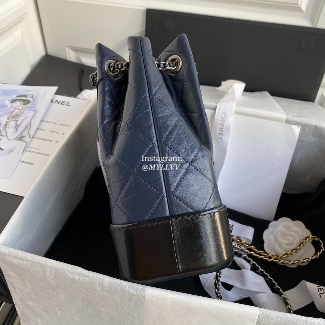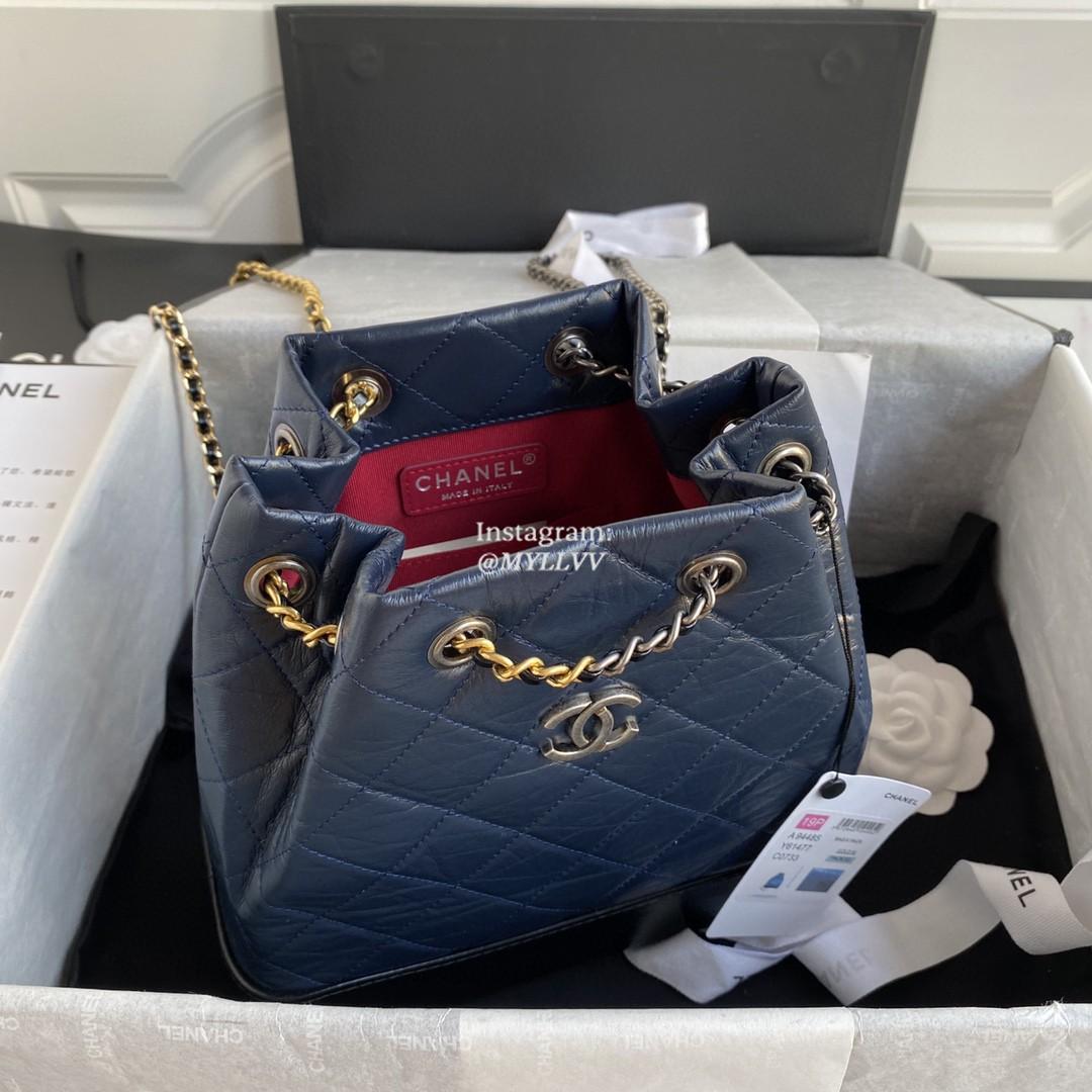 Top Quality Version:MYLLVV » Chanel Diamond Plaid Oil Wax Cowhide Bucket Bag Blue With Gold 94485