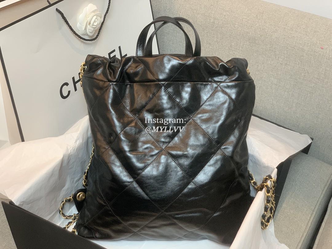 Top Quality Version:MYLLVV » Chanel Diamond Plaid Oil Wax Cowhide Leather Backpack Black With Gold AS3313