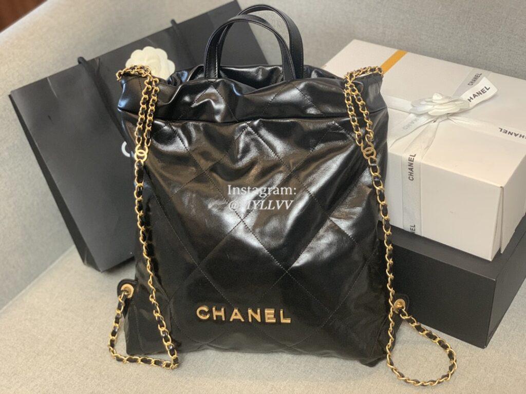 Top Quality Version:MYLLVV » Chanel Diamond Plaid Oil Wax Cowhide Leather Backpack Black With Gold AS3313