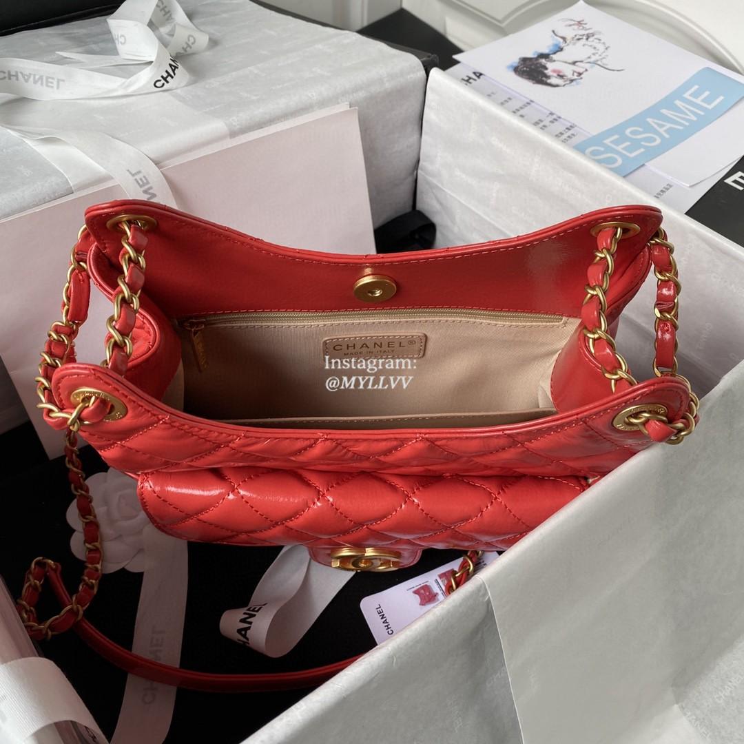 Top Quality Version:MYLLVV » Chanel Diamond Plaid Oil Wax Cowhide Leather Shoulder Bag Red With Gold AS3690