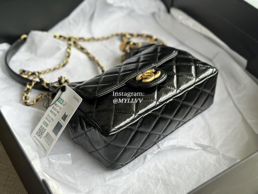 Top Quality Version:MYLLVV » Chanel Diamond Plaid Oil Wax Cowhide Shoulder Bag Black With Gold AS3710