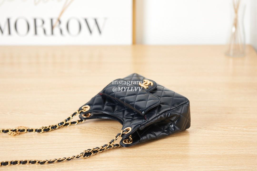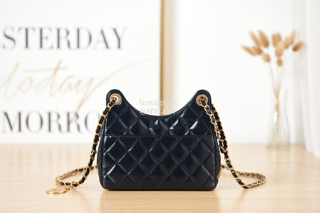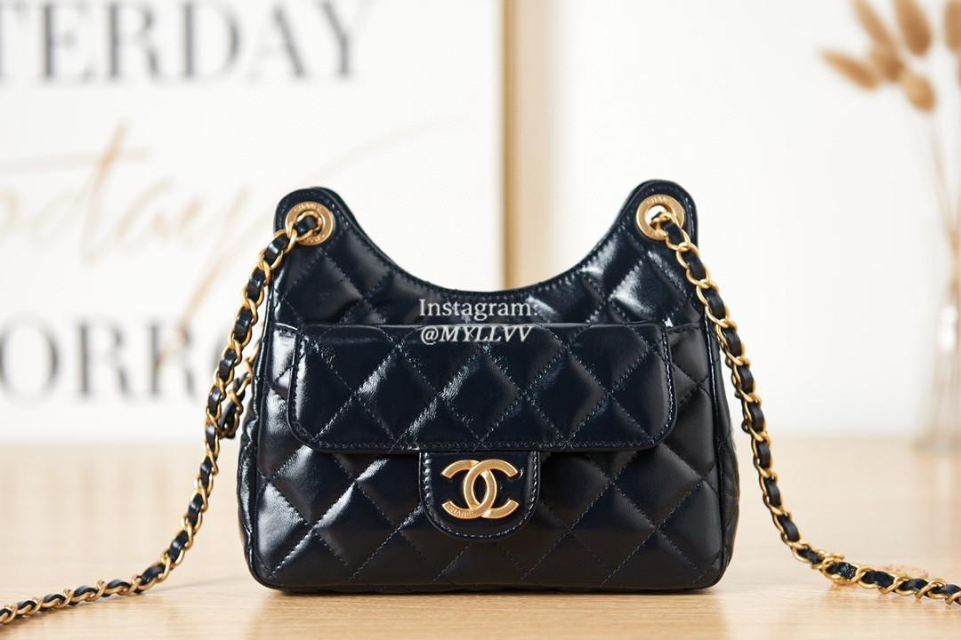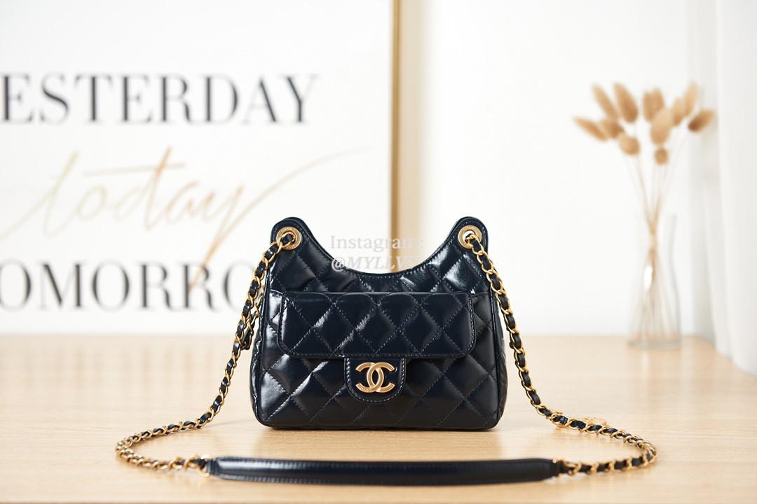 Top Quality Version:MYLLVV » Chanel Diamond Plaid Oil Wax Cowhide Shoulder Bag Dark Blue With Gold AS3710
