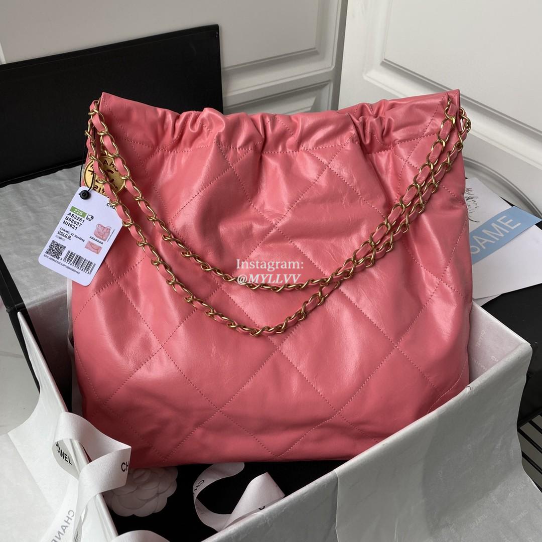 Top Quality Version:MYLLVV » Chanel Diamond Plaid Oil Wax Leather Shopping Bag Peach Red With Gold AS3261