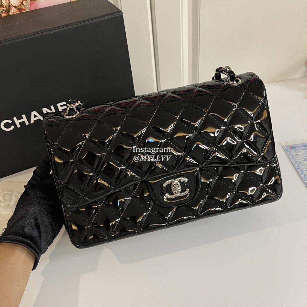 Top Quality Version:MYLLVV » Chanel Diamond Plaid Patent Leather Classic Flap Bag Black With Silver 1113
