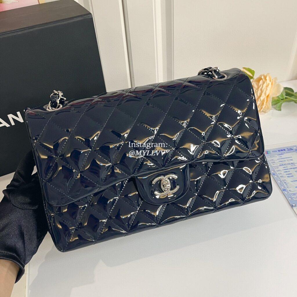 Top Quality Version:MYLLVV » Chanel Diamond Plaid Patent Leather Classic Flap Bag Dark Blue With Silver 1113
