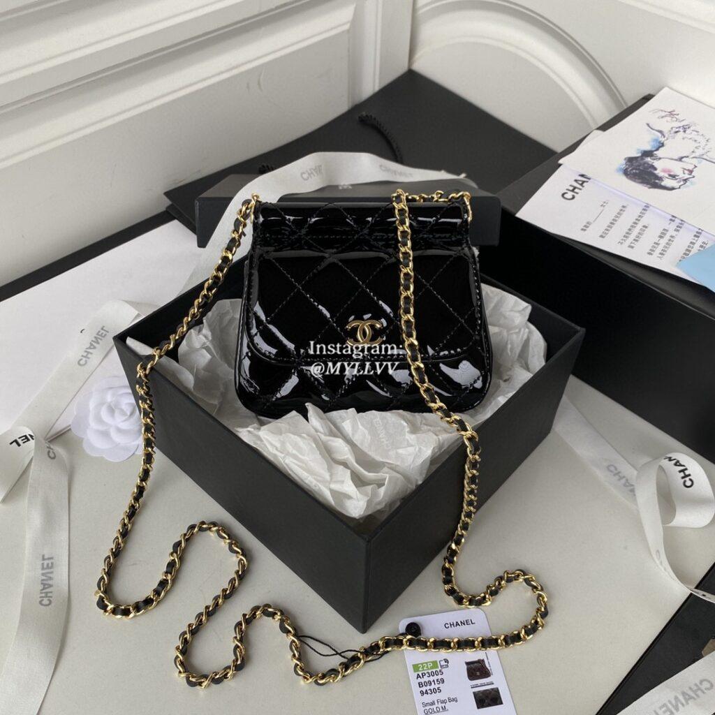 Top Quality Version:MYLLVV » Chanel Diamond Plaid Patent Leather Flap Bag Black With Gold AP3005