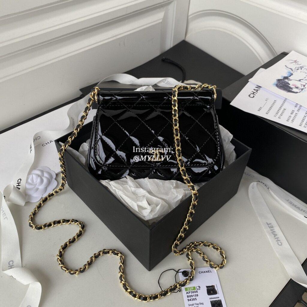 Top Quality Version:MYLLVV » Chanel Diamond Plaid Patent Leather Flap Bag Black With Gold AP3008