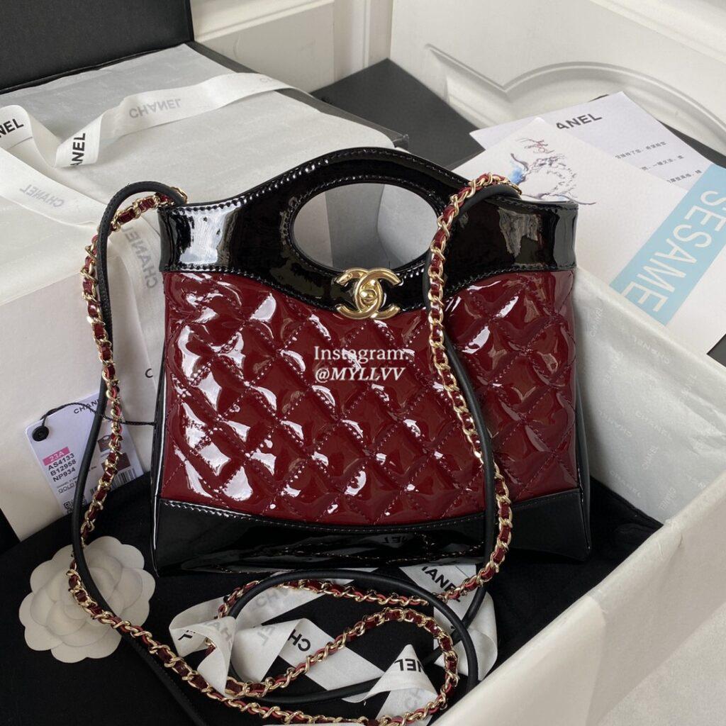 Top Quality Version:MYLLVV » Chanel Diamond Plaid Patent Leather Handle Shoulder Bag Black Wine Red With Gold AS4133