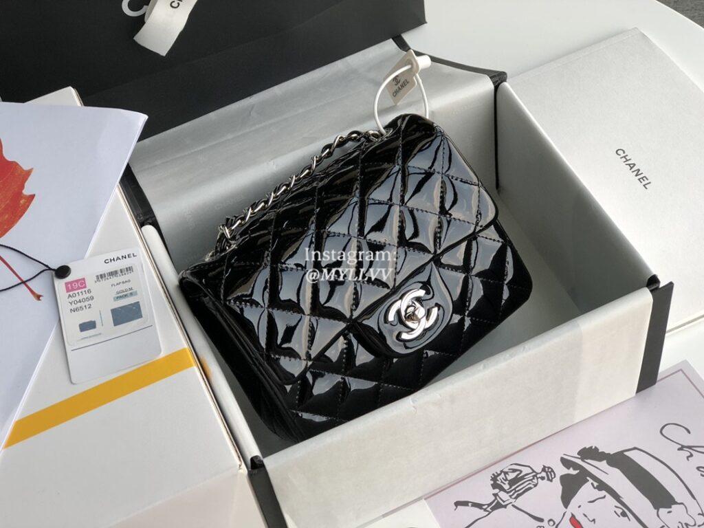 Top Quality Version:MYLLVV » Chanel Diamond Plaid Patent Leather Mini Classic Flap Bag Black With Silver 1115