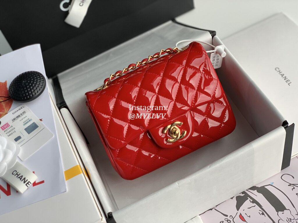 Top Quality Version:MYLLVV » Chanel Diamond Plaid Patent Leather Mini Classic Flap Bag Red With Gold 1115