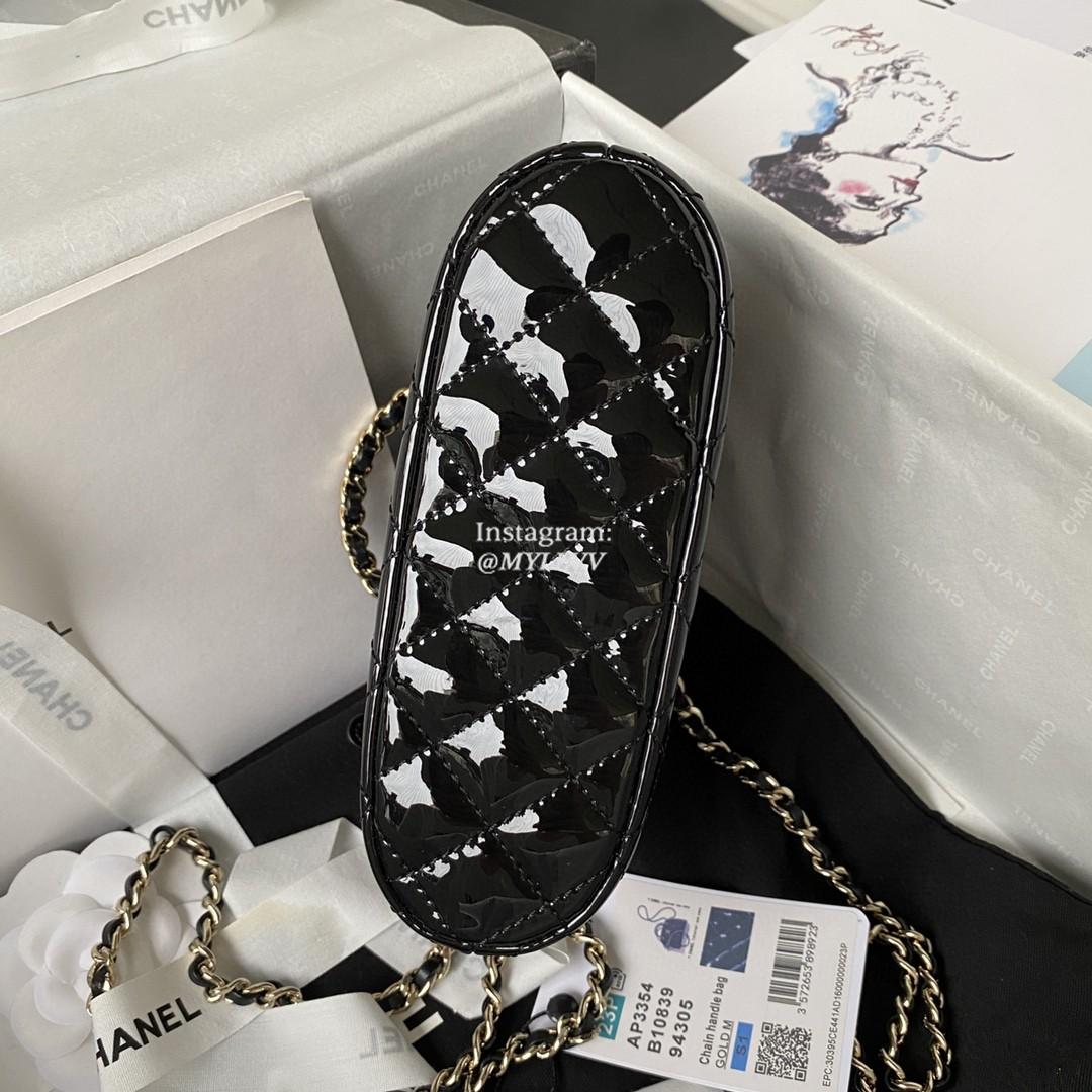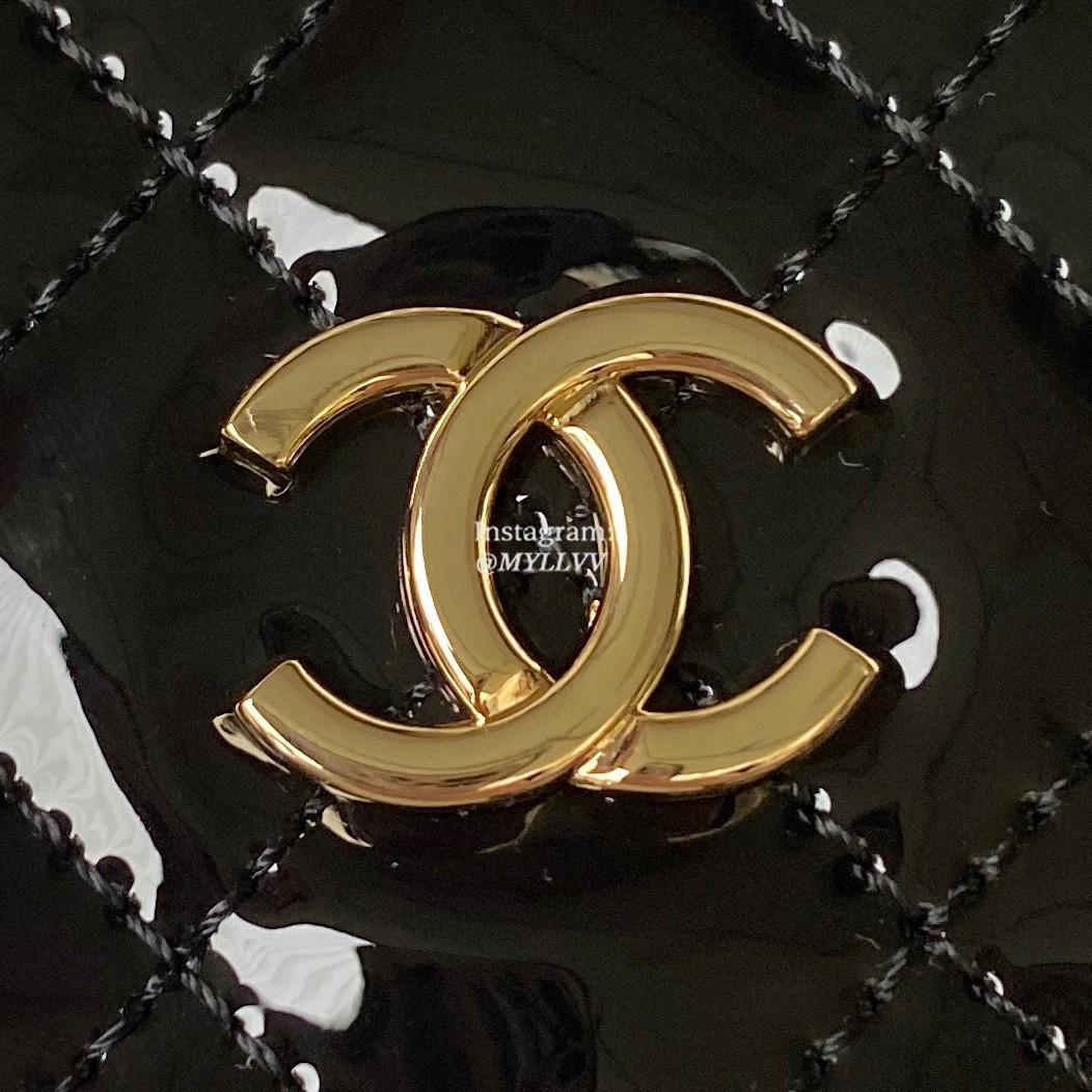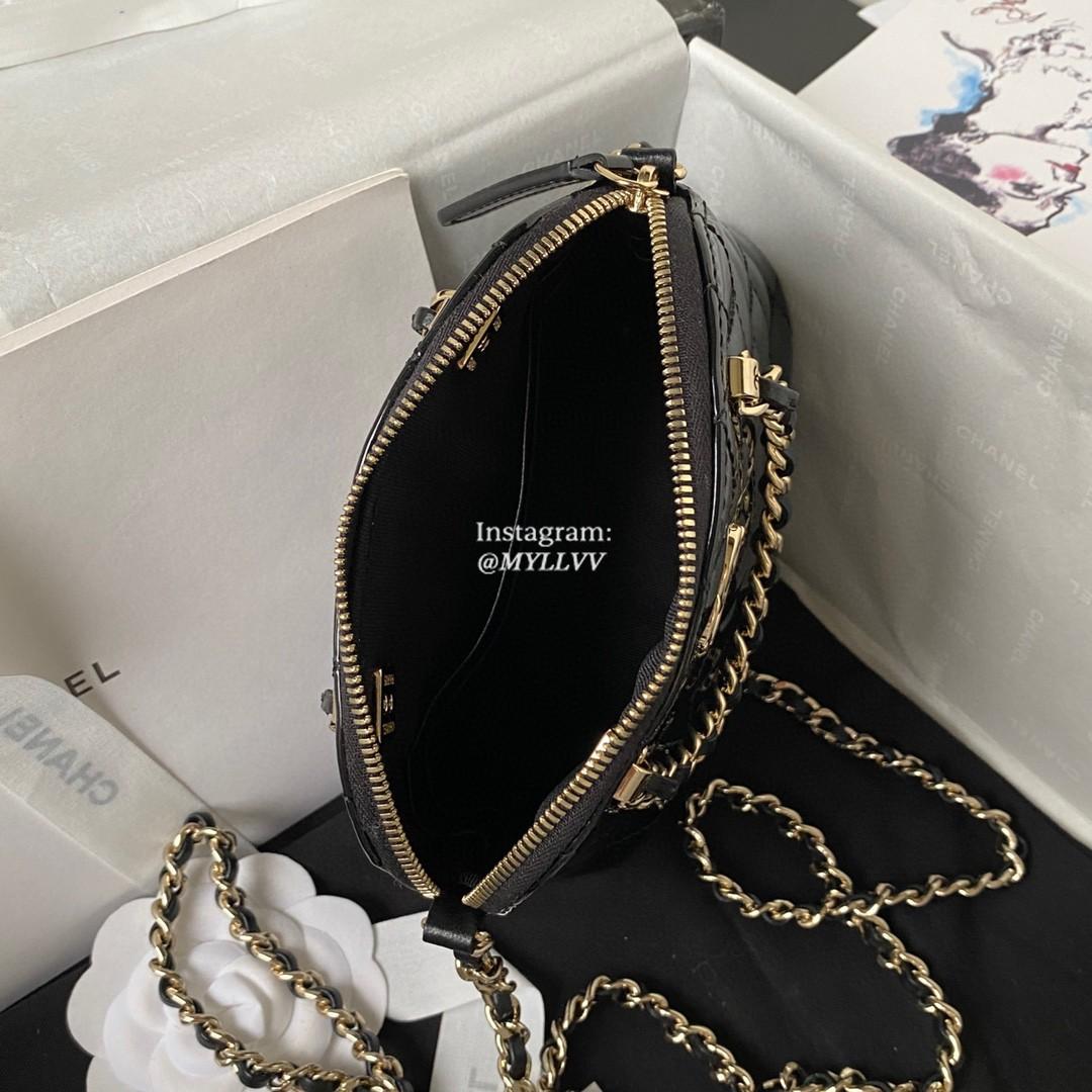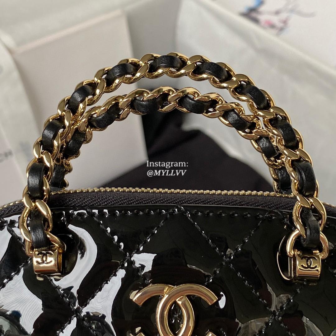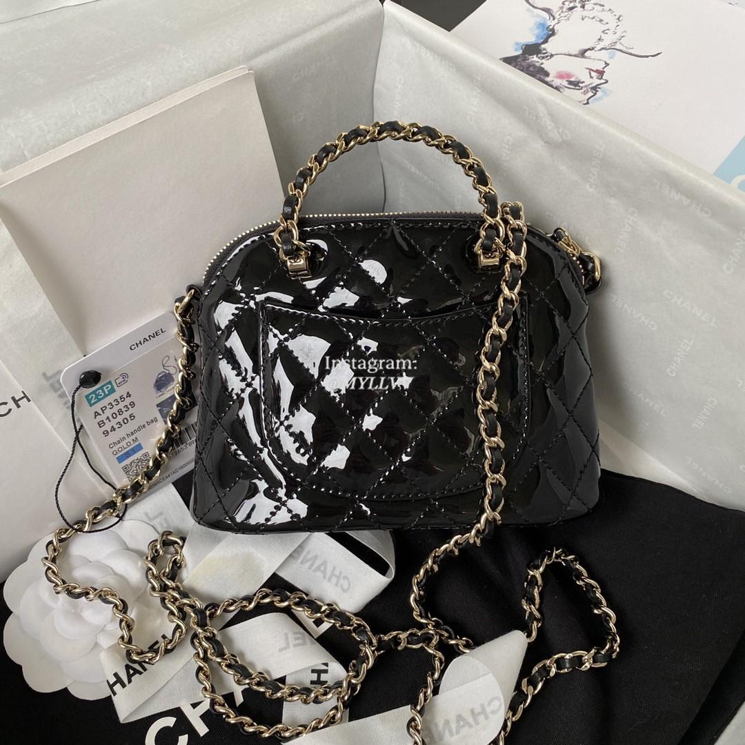 Top Quality Version:MYLLVV » Chanel Diamond Plaid Patent Leather Shell Bag Black With Gold AS3354