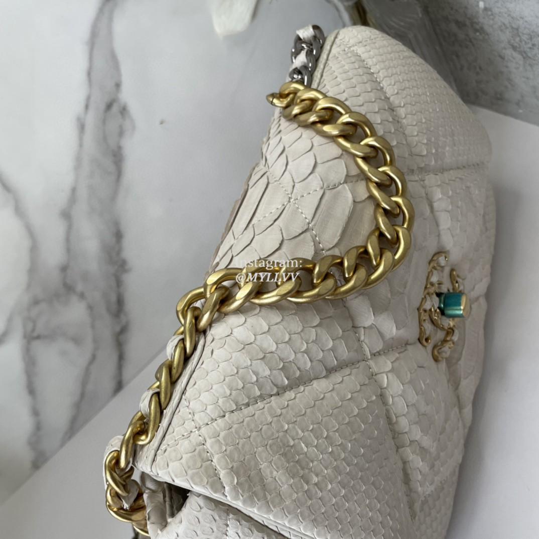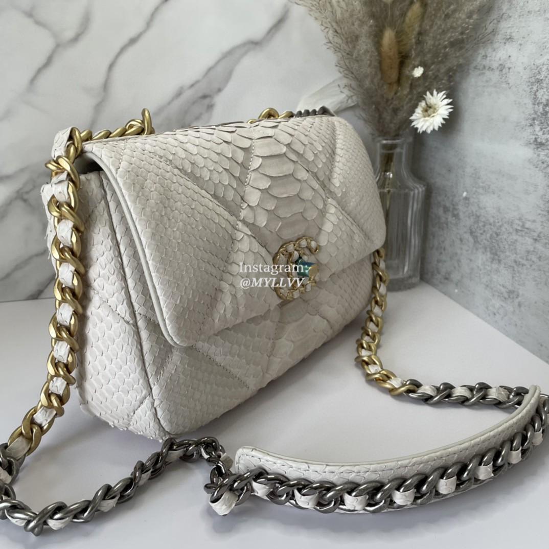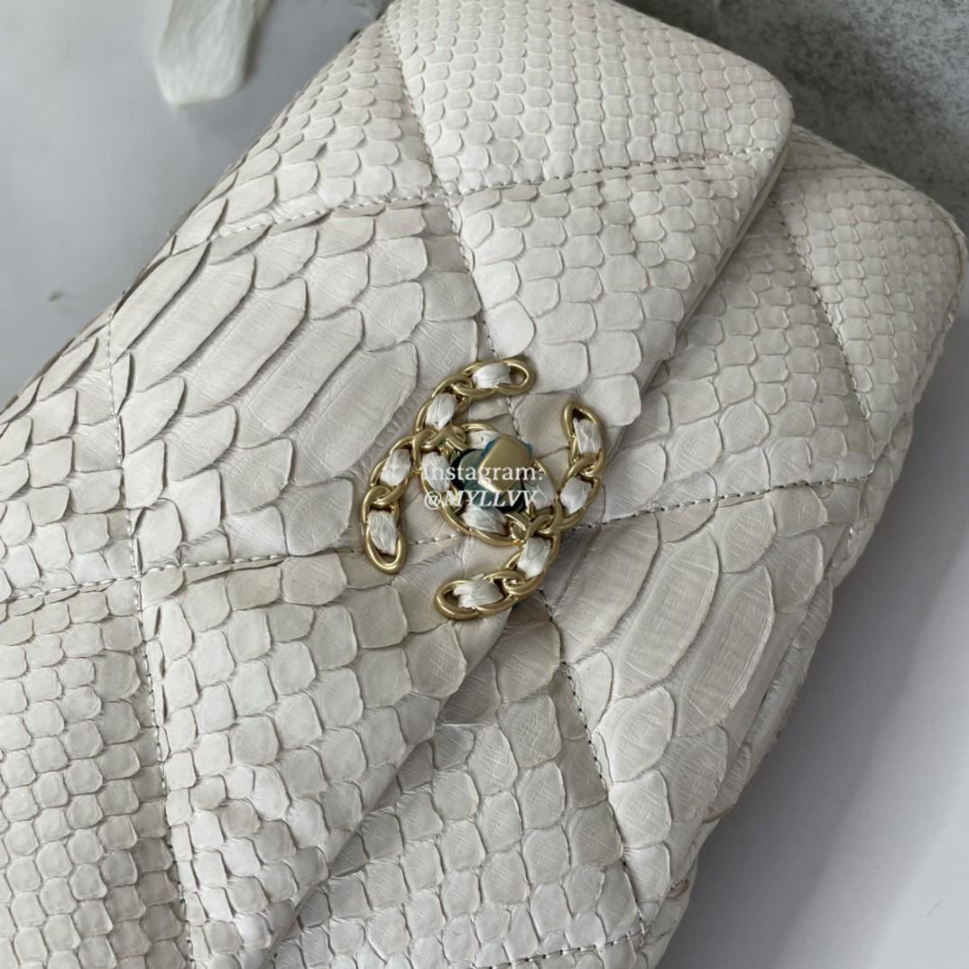 Dimension: 26.0 cm Top Quality Version:MYLLVV » Chanel Diamond Plaid Snake Skin Flap Bag White With Gold S1160