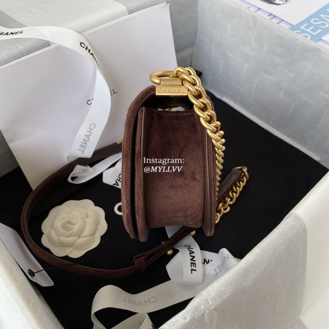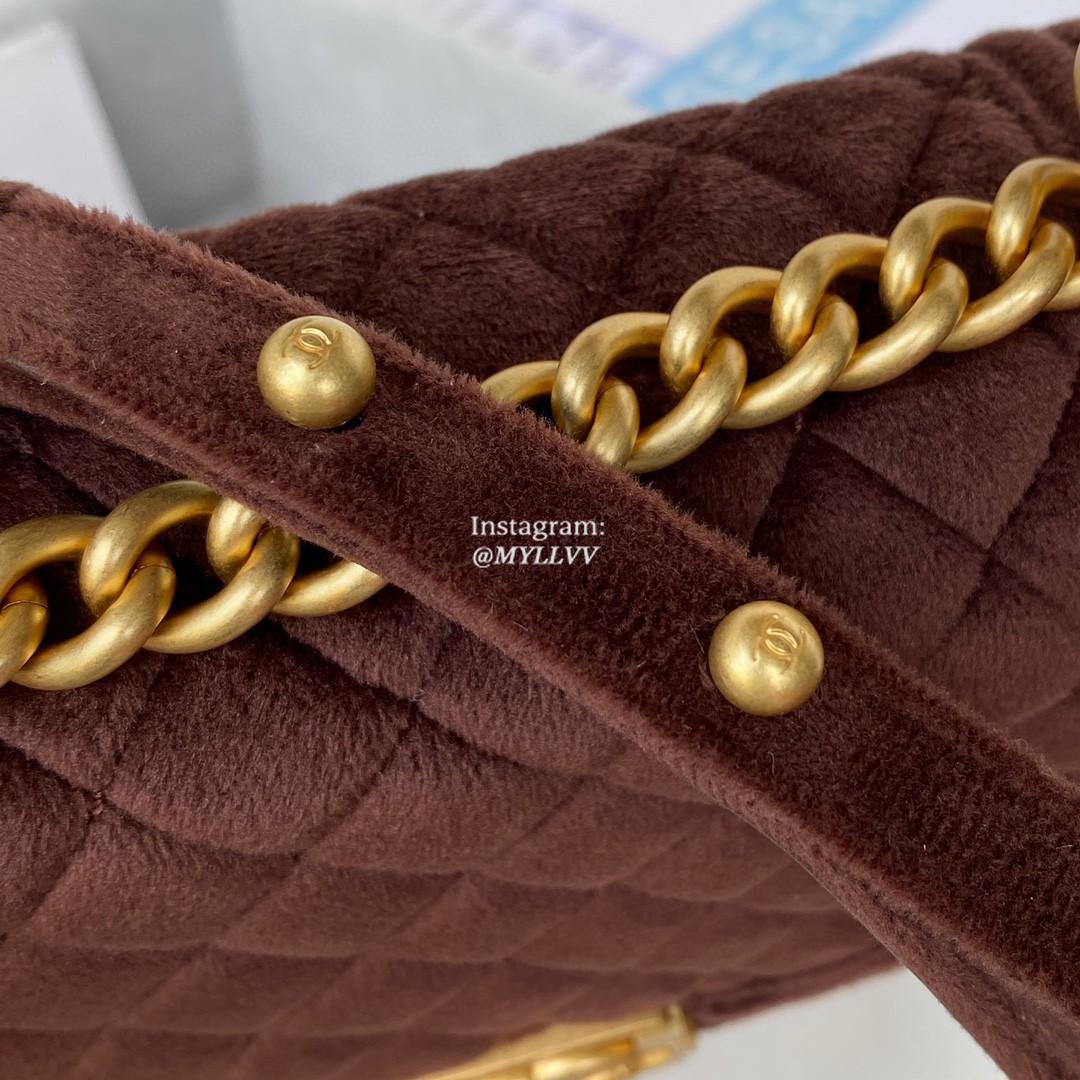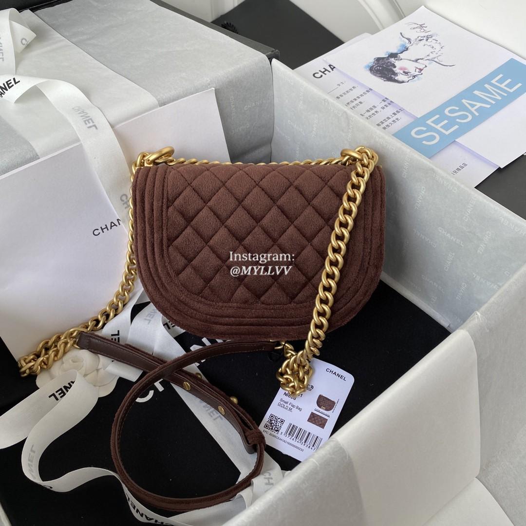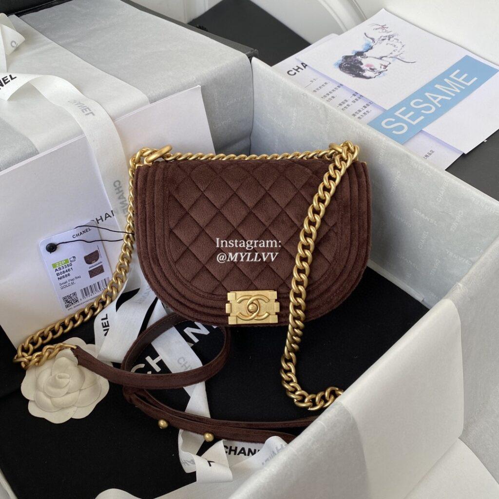 Top Quality Version:MYLLVV » Chanel Diamond Plaid Velvet Saddle Bag Coffee With Gold AS3350