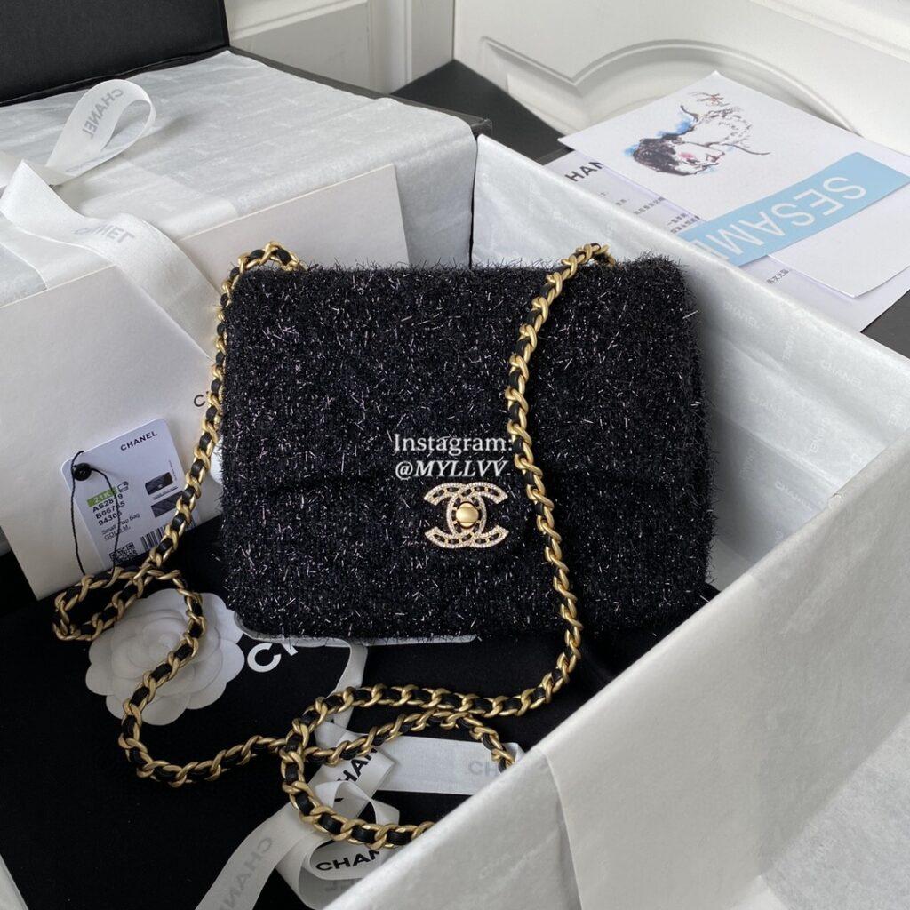 Top Quality Version:MYLLVV » Chanel Diamond Plaid Wool Classic Flap Bag Black With Gold AS2819