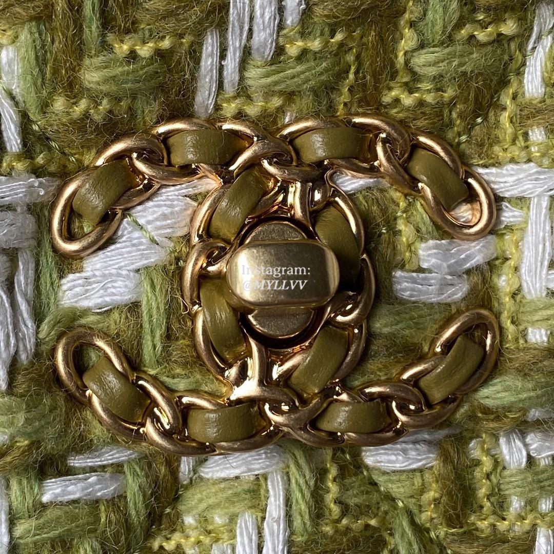 Top Quality Version:MYLLVV » Chanel Diamond Plaid Wool Classic Flap Bag Green With Gold AS1160/AS1161