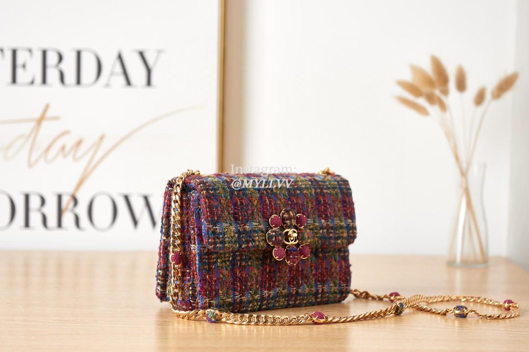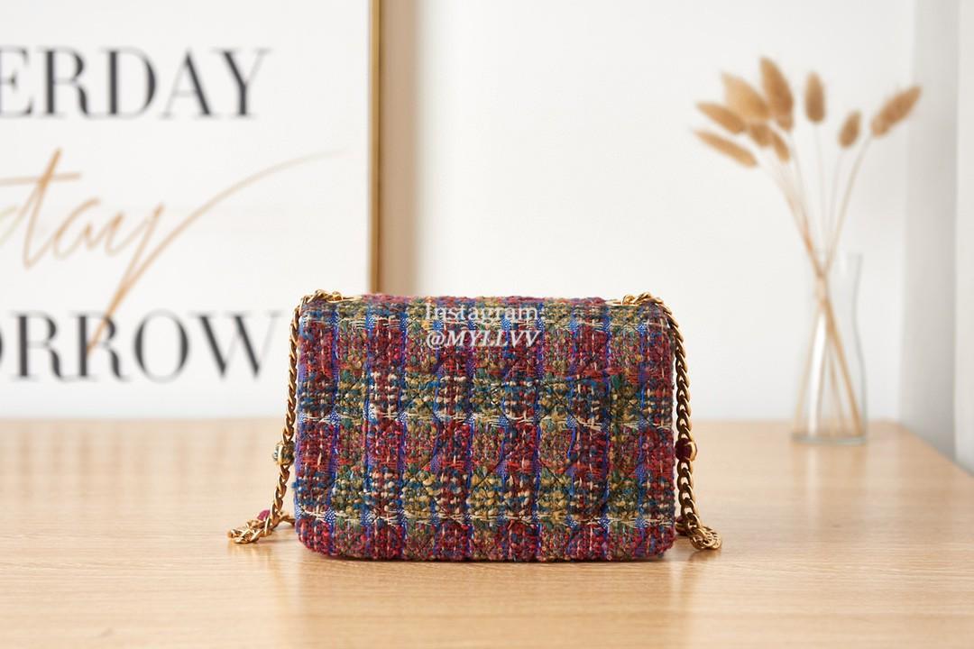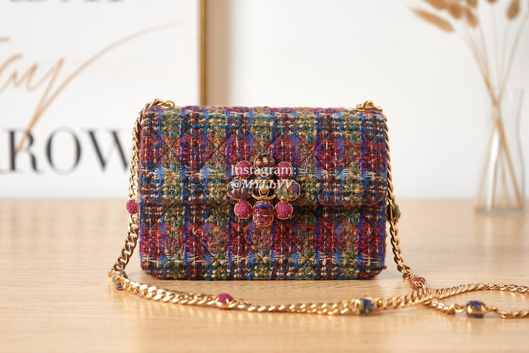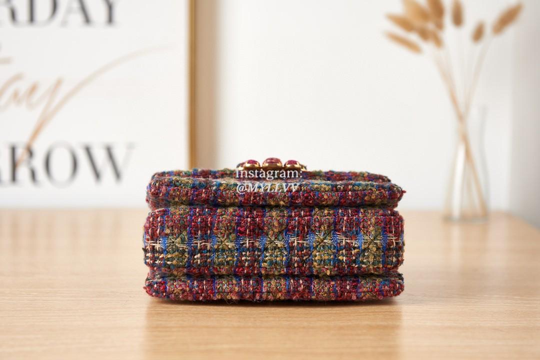 Dimension: 15.0 × 20.0 × 10.0 cm Top Quality Version:MYLLVV » Chanel Diamond Plaid Wool Flap Bag Rose Red With Gold AS3639