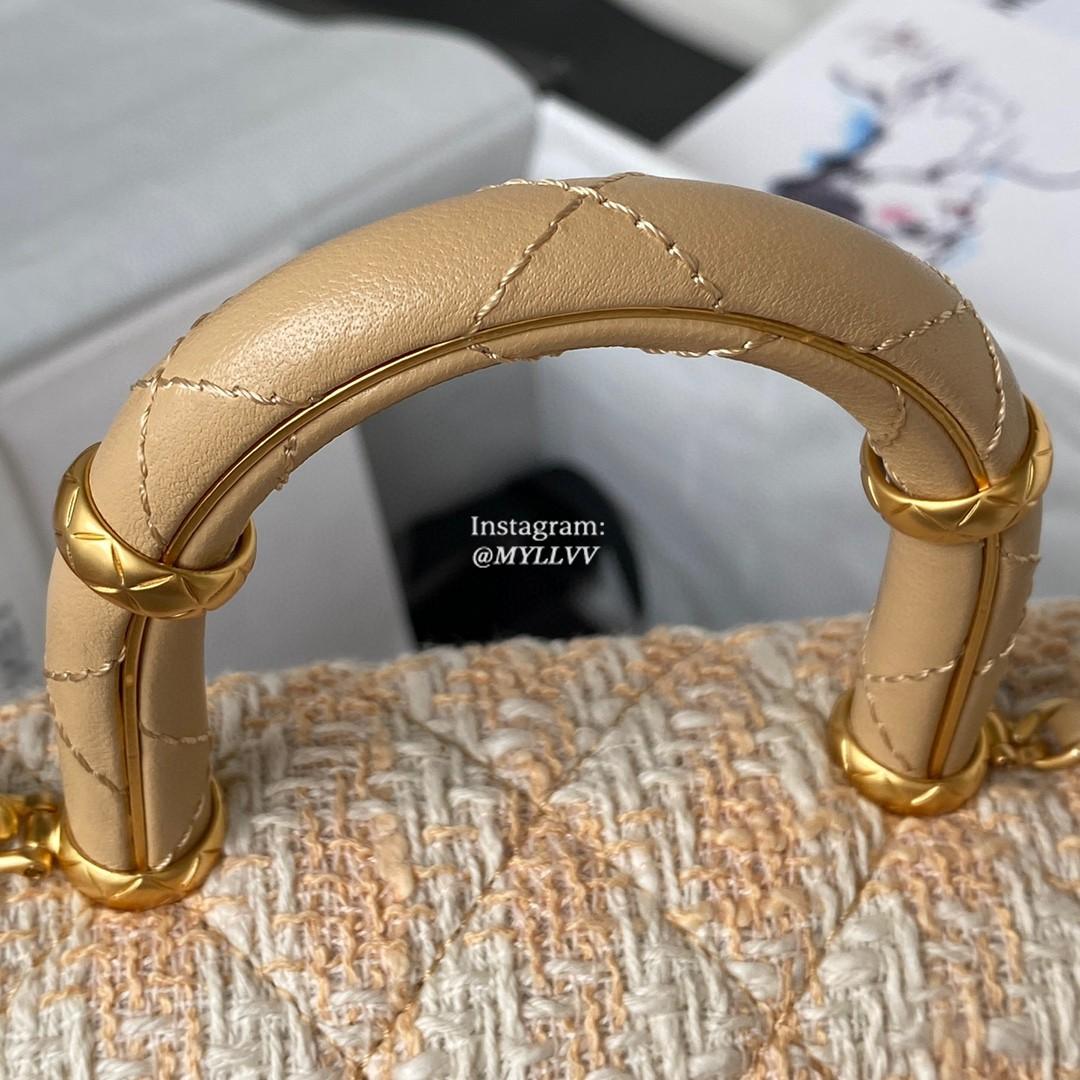 Top Quality Version:MYLLVV » Chanel Diamond Plaid Wool Handle Flap Bag Apricot With Gold AS4035