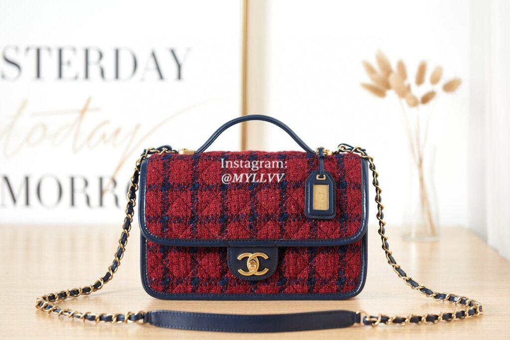Top Quality Version:MYLLVV » Chanel Diamond Plaid Wool Handle Flap Bag Red With Gold AS3653