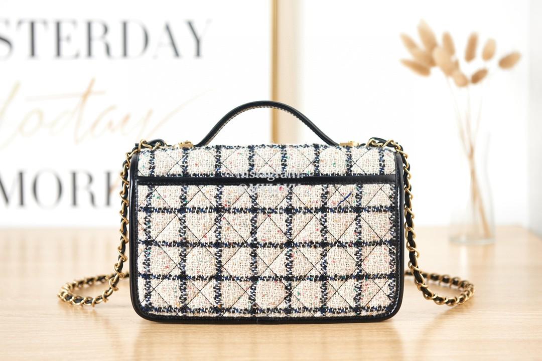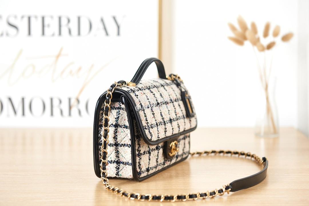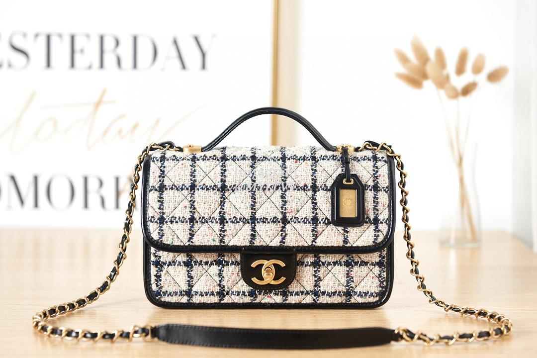 Top Quality Version:MYLLVV » Chanel Diamond Plaid Woolen Cloth Handle Flap Bag White Lattice With Gold AS3653
