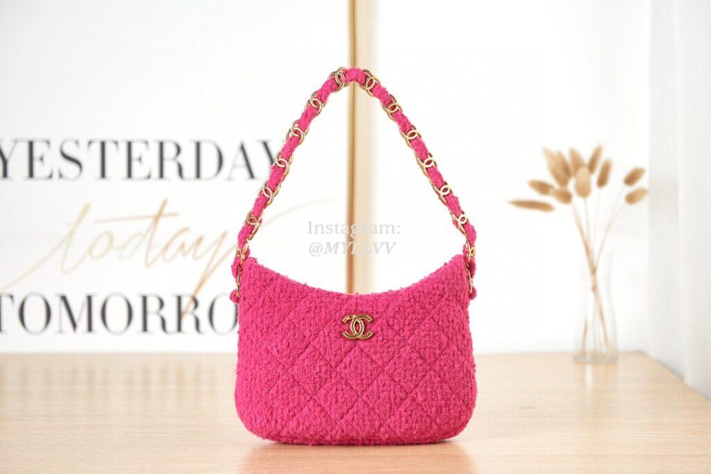 Top Quality Version:MYLLVV » Chanel Diamond Plaid Woolen Cloth Hobo Bag Rose Red With Gold AS3562