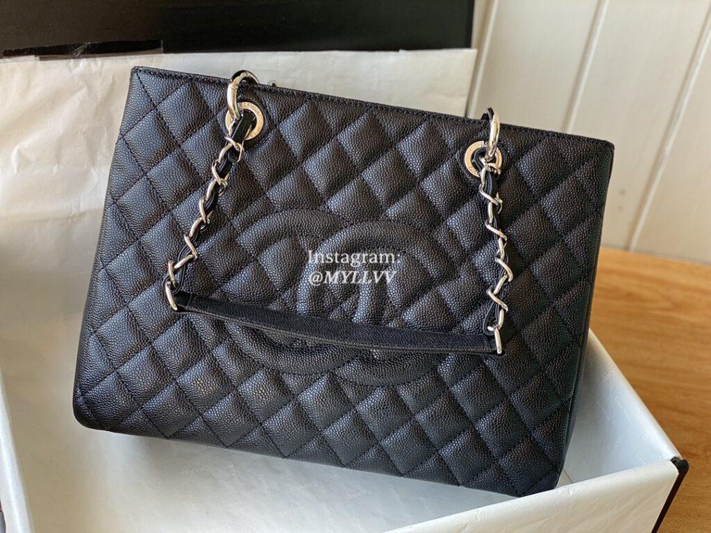 Top Quality Version:MYLLVV » Chanel GXT Diamond Plaid Caviar Cowhide Shopping Bag Black With Sliver 20995