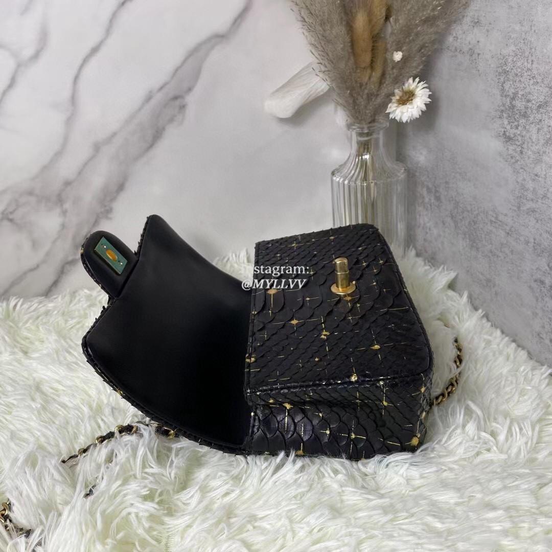 Dimension: 20.0 × 13.0 × 6.0 cm Top Quality Version:MYLLVV » Chanel Snake Skin Handle Flap Bag Black Star With Gold 2431