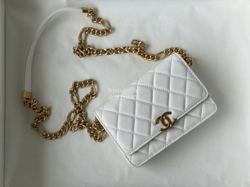 Top Quality Version:MYLLVV » Chanel Woc Diamond Plaid Caviar Cowhide Chain Bag White With Gold 81155