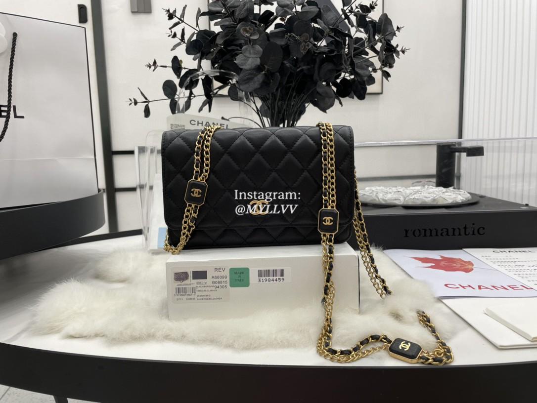 Top Quality Version:MYLLVV » Chanel Woc Diamond Plaid Lambskin Chain Bag Black With Gold A68099