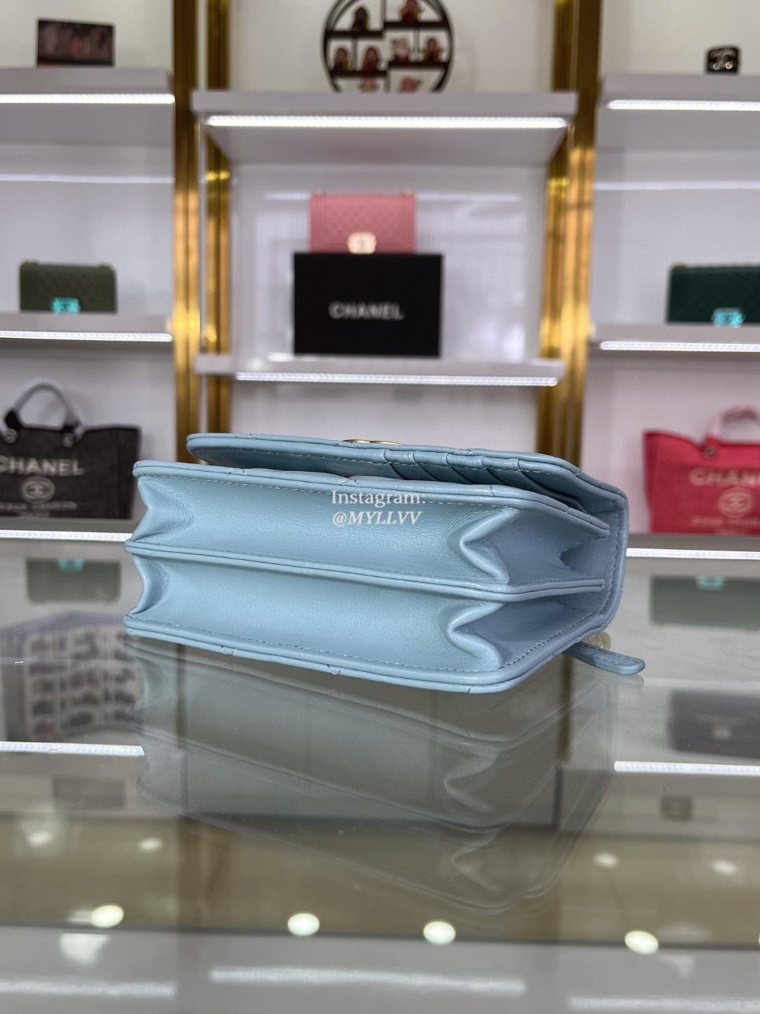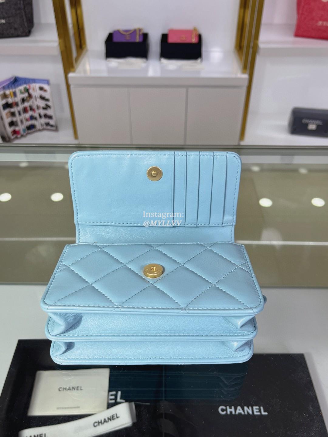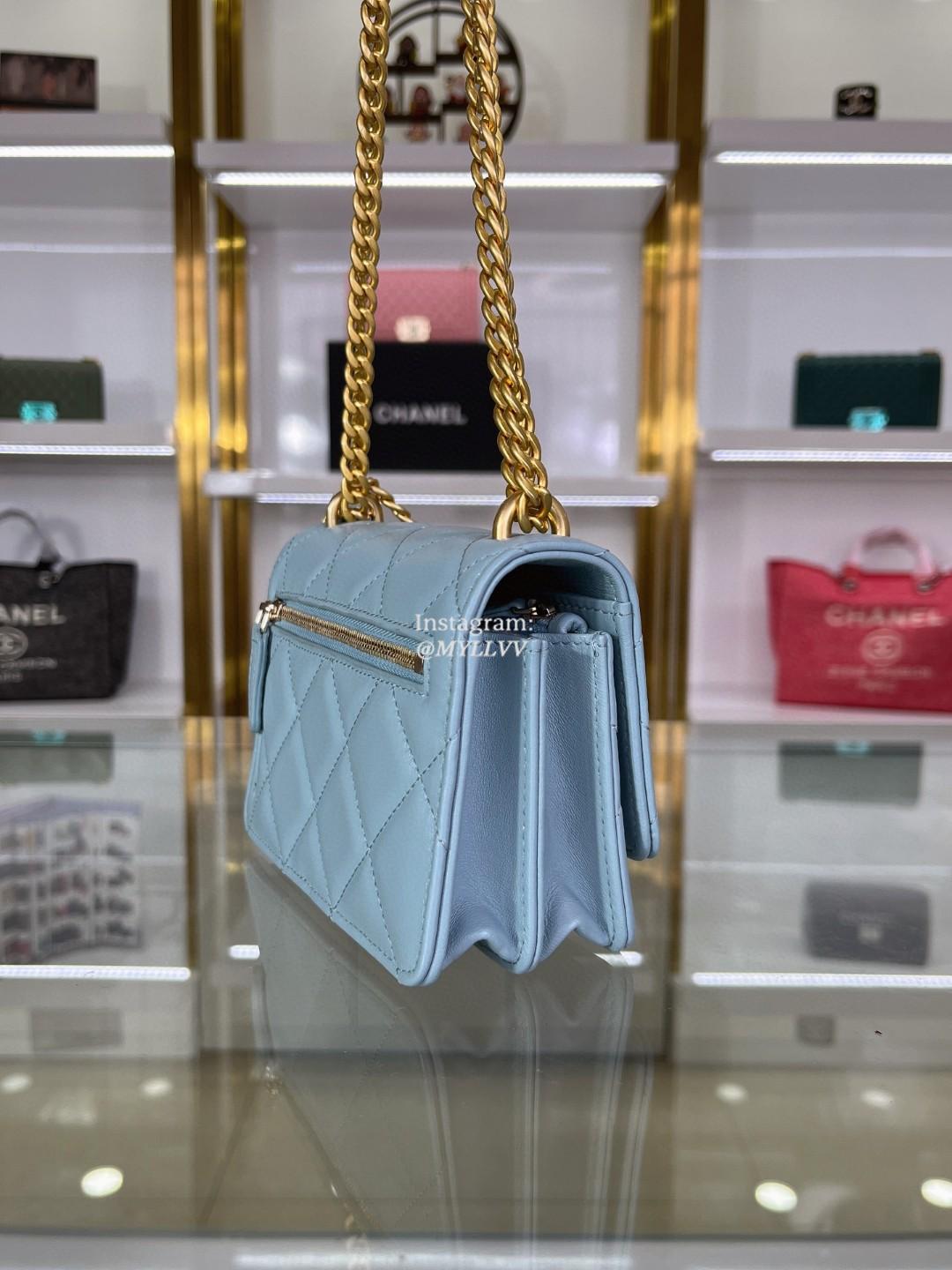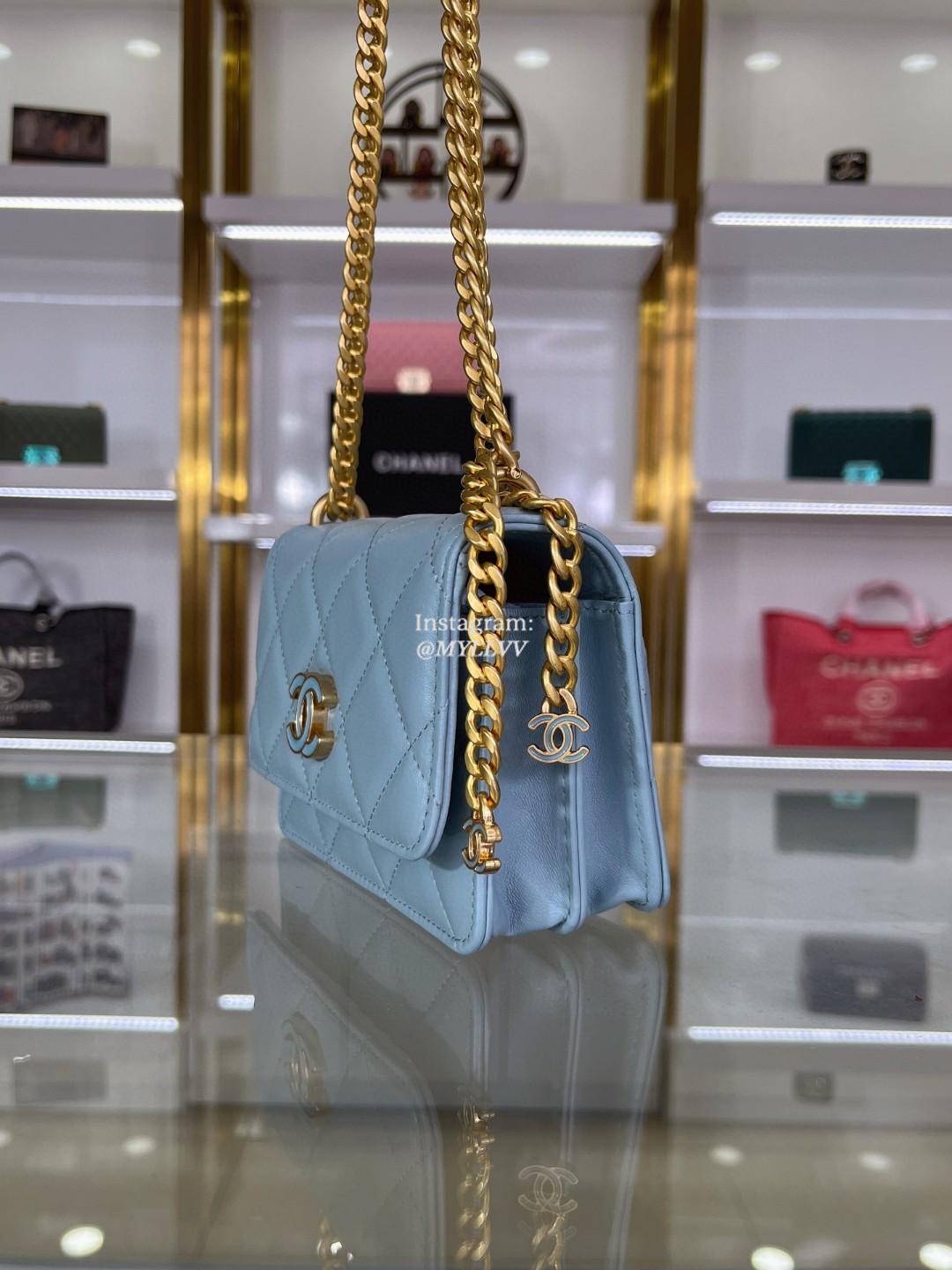 Top Quality Version:MYLLVV » Chanel Woc Diamond Plaid Lambskin Chain Flap Bag Sky Blue With Gold AP2635
