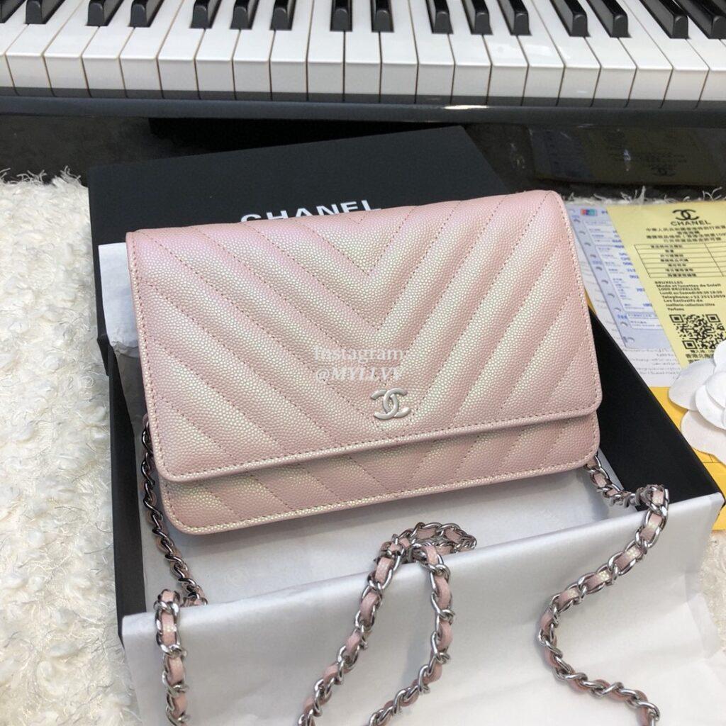 Top Quality Version:MYLLVV » Chanel Woc V Plaid Caviar Cowhide Flap Bag Rose Gold With Silver 33814