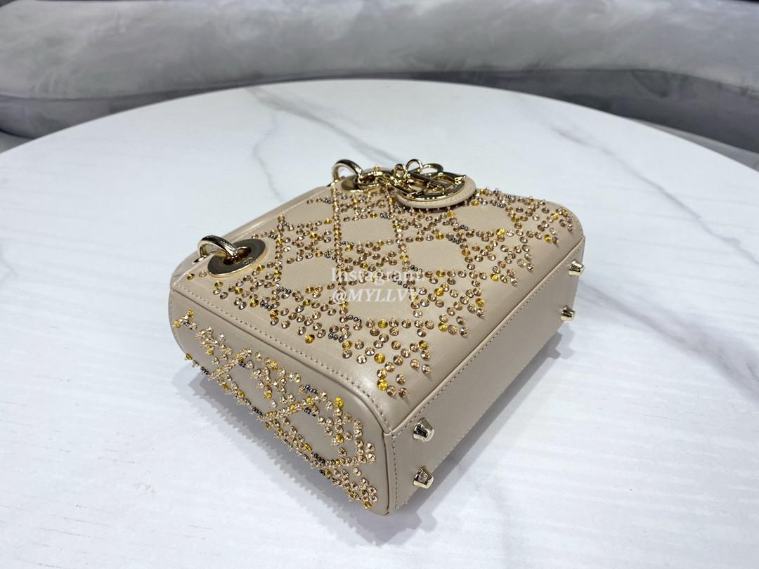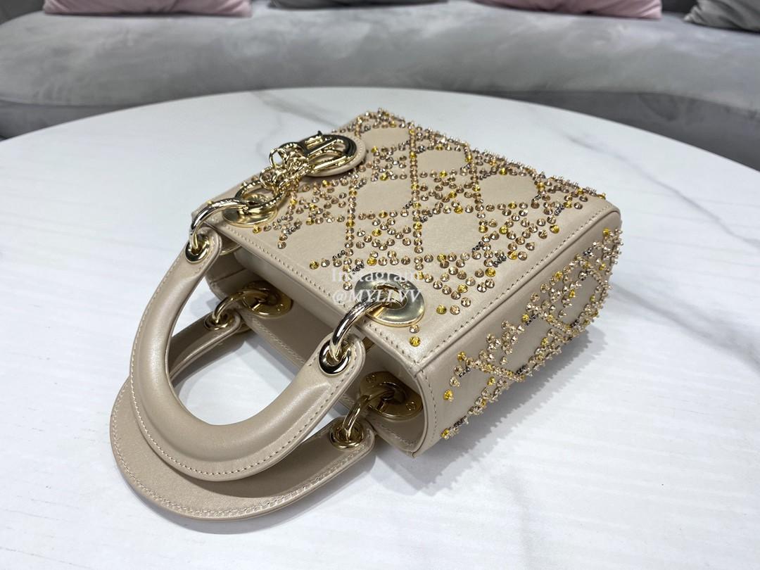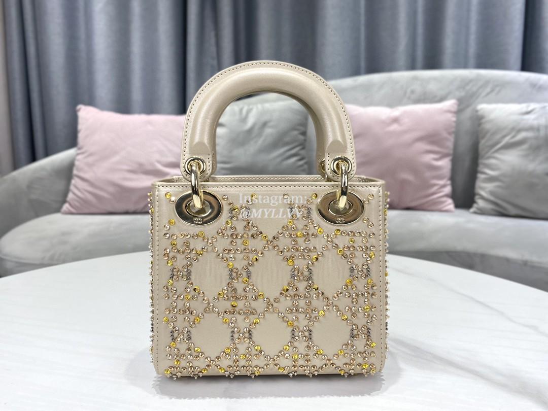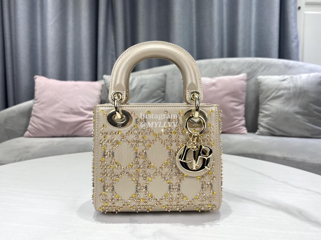 Dimension: 17.0 × 15.0 × 7.0 cm Top Quality Version:MYLLVV » Dior Apricot Strass Cannage Satin Small Lady Dior Bag