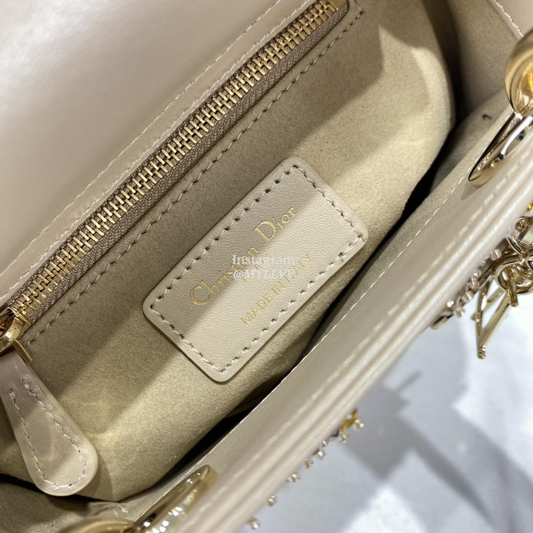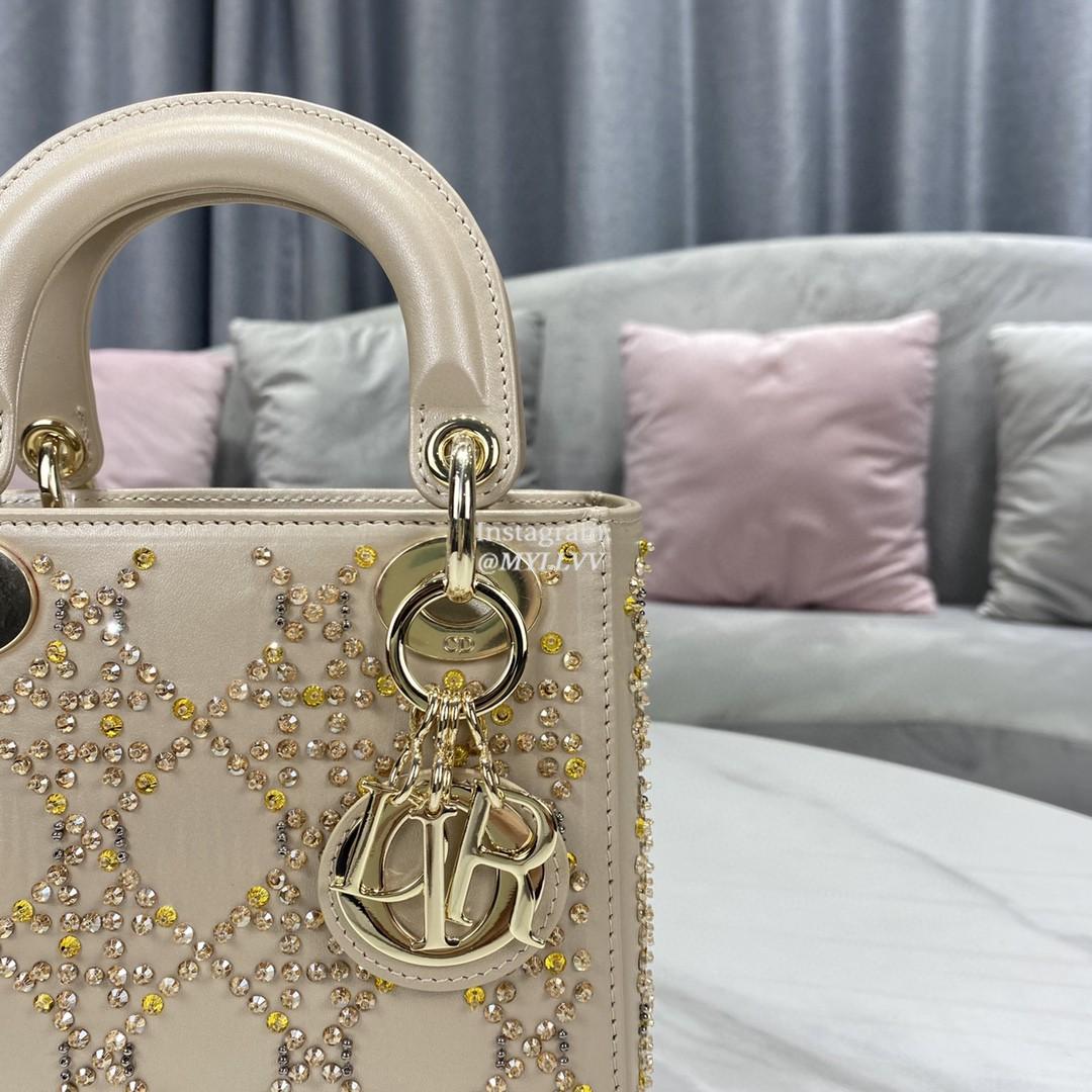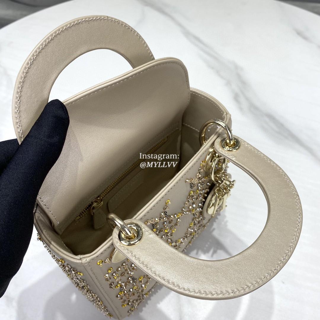Dimension: 17.0 × 15.0 × 7.0 cm Top Quality Version:MYLLVV » Dior Apricot Strass Cannage Satin Small Lady Dior Bag