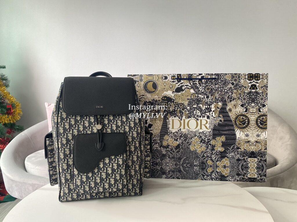 Top Quality Version:MYLLVV » Dior Beige And Black Dior Oblique Jacquard And Black Grained Calfskin Saddle Backpack 9864