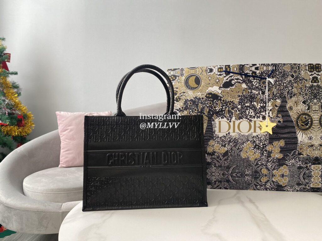 Top Quality Version:MYLLVV » Dior Black Dior Oblique Embossed Calfskin Medium Dior Book Tote