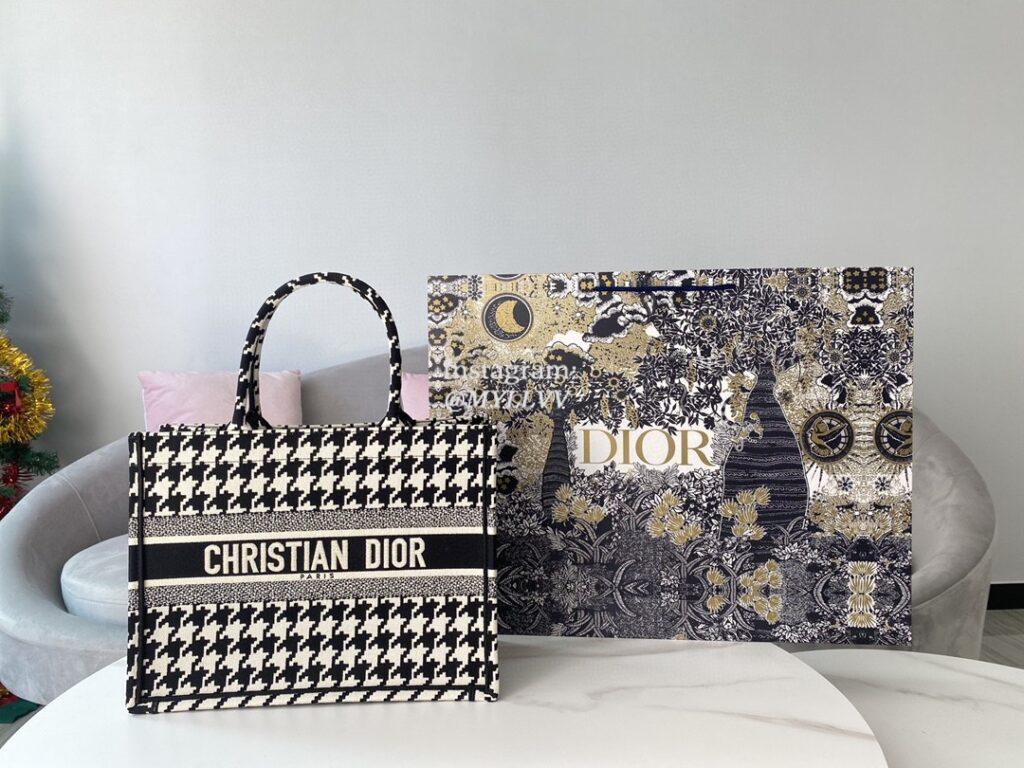 Top Quality Version:MYLLVV » Dior Black Macro Houndstooth Embroidery Medium Dior Book Tote