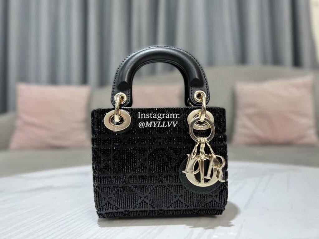 Top Quality Version:MYLLVV » Dior Black Metallic Cannage Lambskin Embroidered With Beads Micro Lady Dior Bag S0856
