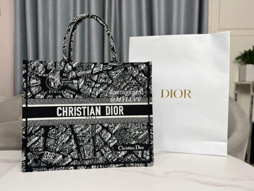 Dimension: 41.5 × 35.0 × 17.5 cm Top Quality Version:MYLLVV » Dior Black Plan de Paris Pattern Embroidery Large Book Tote